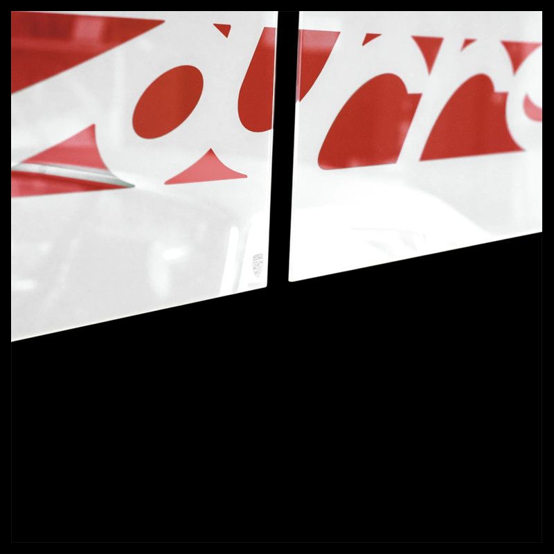 Siebdruck unter Glas für Langlebigkeit und Farbtreue.