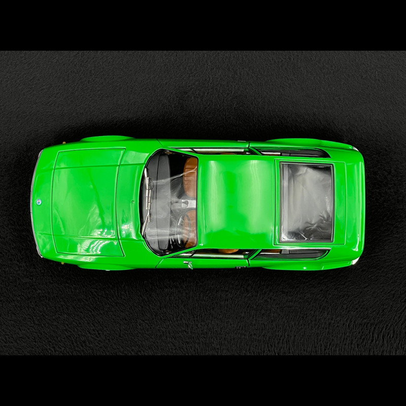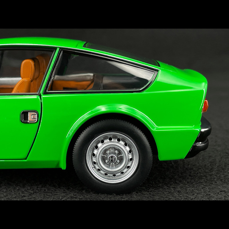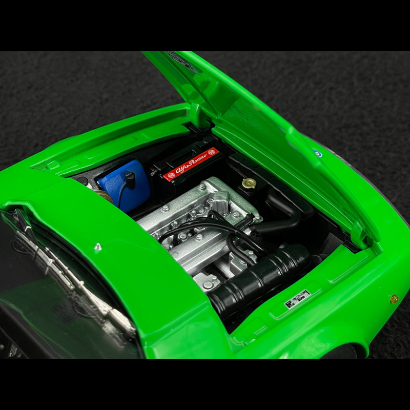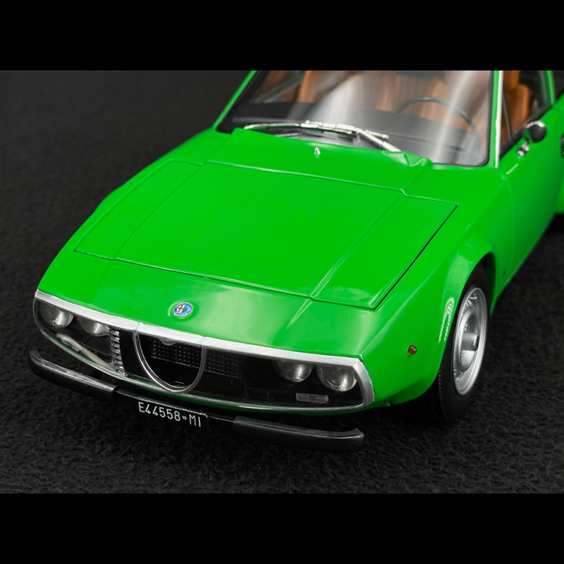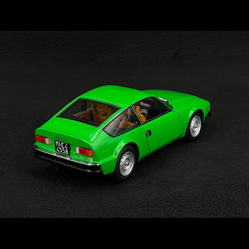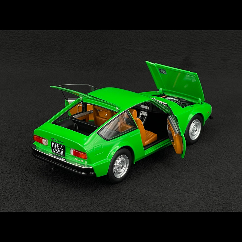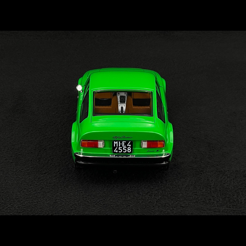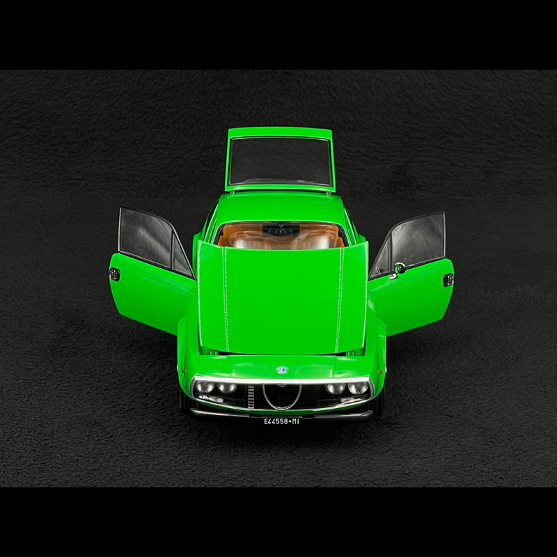 Im Maßstab 1:18 unterstreicht die grüne Karosserie die Klarheit des Designs: abfallende Motorhaube, perfekt gerade Karosserielinie, abruptes Heck wie ein Säbelschnitt – alles ist im Licht klar erkennbar. Die sehr kompakten Proportionen, die dünnen Felgen mit ihrem klassischen Design und der durch die großen Glasflächen sichtbare intime Innenraum verleihen dem Miniaturmodell eine sehr elegante Präsenz und machen es unter anderen Sammler-Alfas ideal, um die avantgardistische Seite des Zagato-Stils der späten 1960er Jahre hervorzuheben.