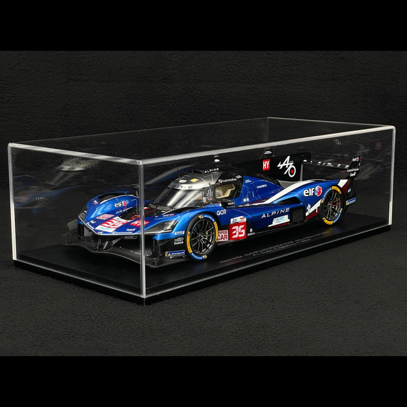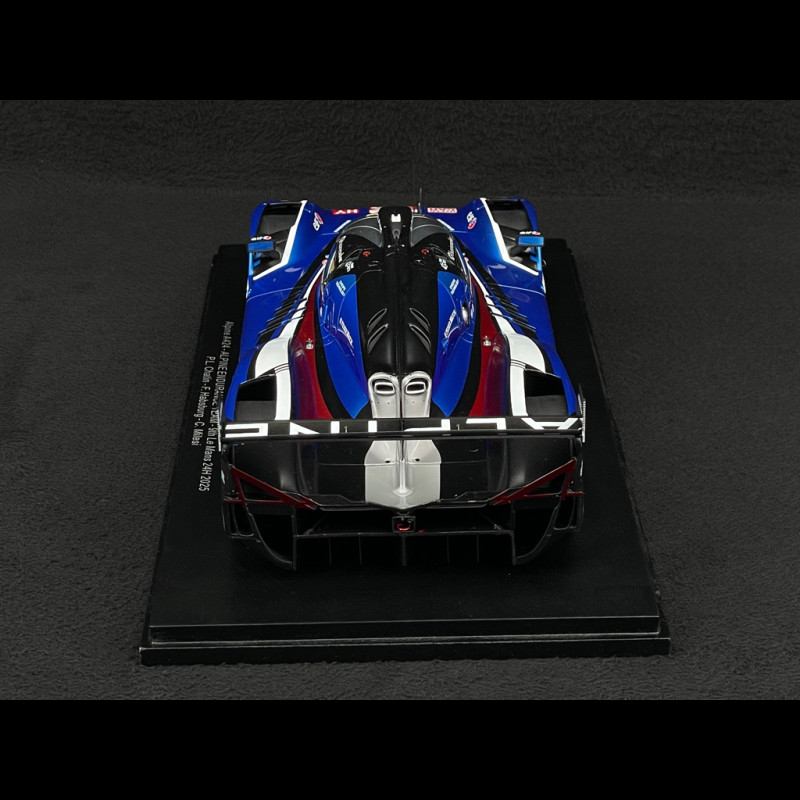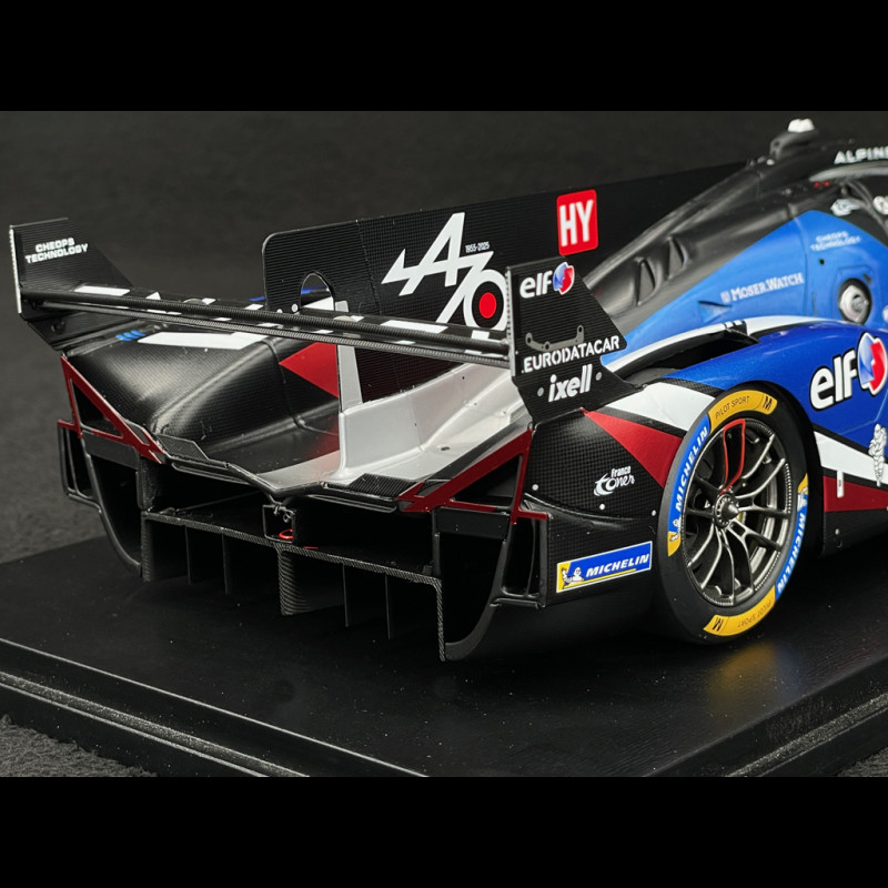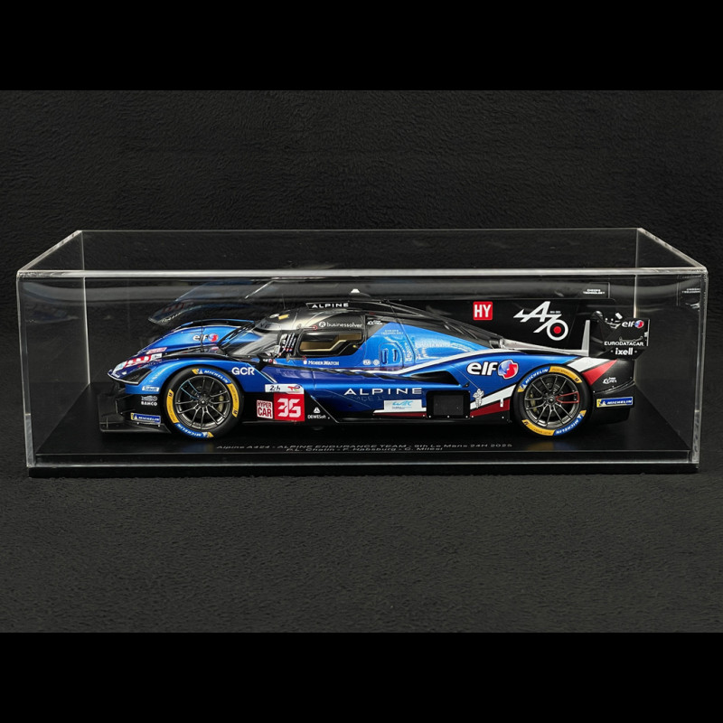 Dieses Modell des Alpine A424 Nr. 35 vom 24-Stunden-Rennen von Le Mans 2025 im Maßstab 1:18 von Spark gibt den Hypercar des Alpine Endurance Teams mit seiner futuristischen Silhouette, der blau-weiß-roten Lackierung und allen offiziellen Markierungen, einschließlich der Namen Chatin/Habsburg/Milesi im Innenraum, detailgetreu wieder. Das aus Resin gefertigte und auf einem Sockel präsentierte Modell hebt die komplexe Aerodynamik (Flügel, Finnen, Diffusor), die Rennfelgen und die sorgfältige Verarbeitung hervor und ist somit ideal für eine Vitrine, die französischen Hypercars und den modernen 24 Stunden von Le Mans gewidmet ist.