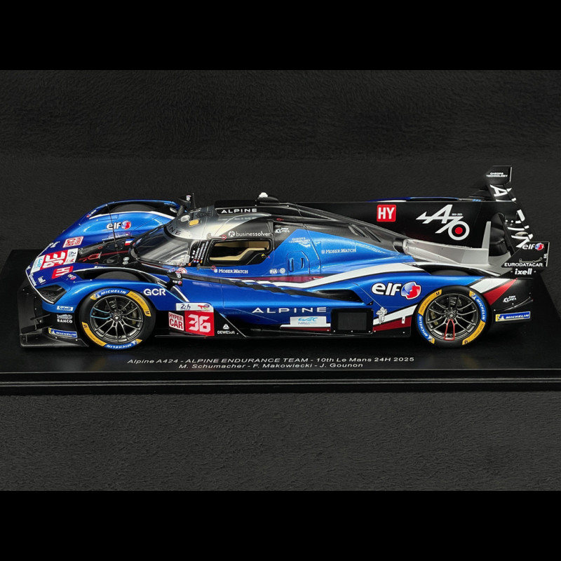 Der Alpine A424 Nr. 36, eingesetzt vom Alpine Endurance Team in der Hypercar-Klasse, nahm 2025 mit Mick Schumacher, Frédéric Makowiecki und Jules Gounon an den 24 Stunden von Le Mans teil. Für den Sohn des siebenmaligen Formel-1-Weltmeisters war dies seine erste Teilnahme in der Königsklasse von Le Mans. Nach dem erfolgreichen Qualifying in der Hyperpole und einer langen Fahrt an der Spitze des Feldes belegte die Nr. 36 schließlich den 10. Platz. Dies trug zu einem Doppelsieg für die französische Marke bei und unterstrich die wachsende Stärke des A424-Projekts im Vergleich zu den Giganten des Langstreckenrennsports.