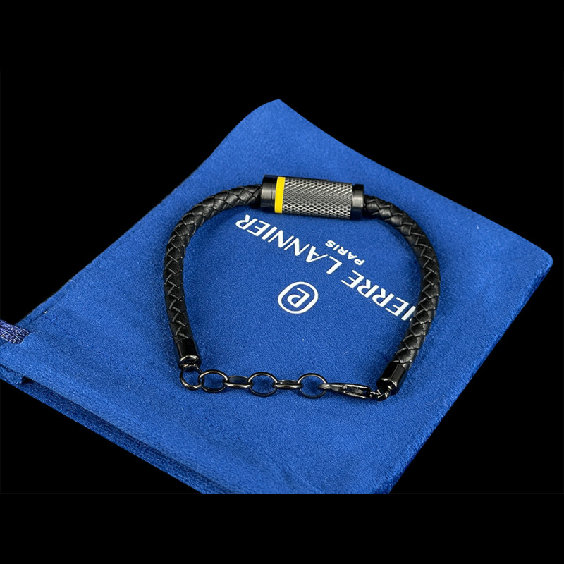 Herrenarmband im Automobil-Design Paddock Schwarz / Gelb Geflochtenes Leder Pierre Lannier BJ40A1541