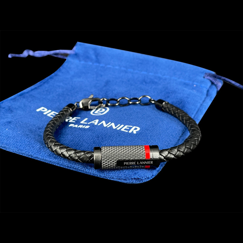 Herrenarmband im Automobil-Design Paddock Schwarz / Rot Geflochtenes Leder Pierre Lannier BJ40A1551
