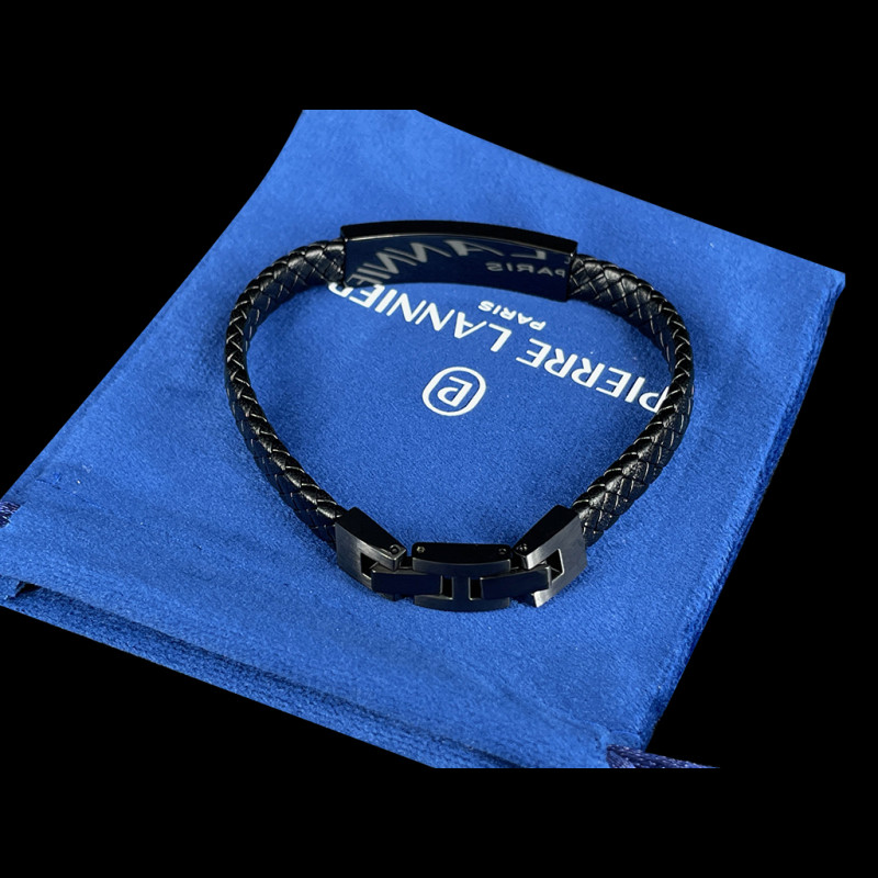 Armband im Automobil-Design Paddock Schwarz / Rot Stahl und Geflochtenes Leder Pierre Lannier BJ40A5501