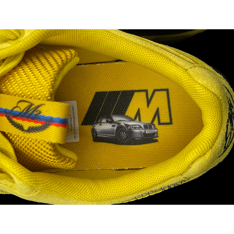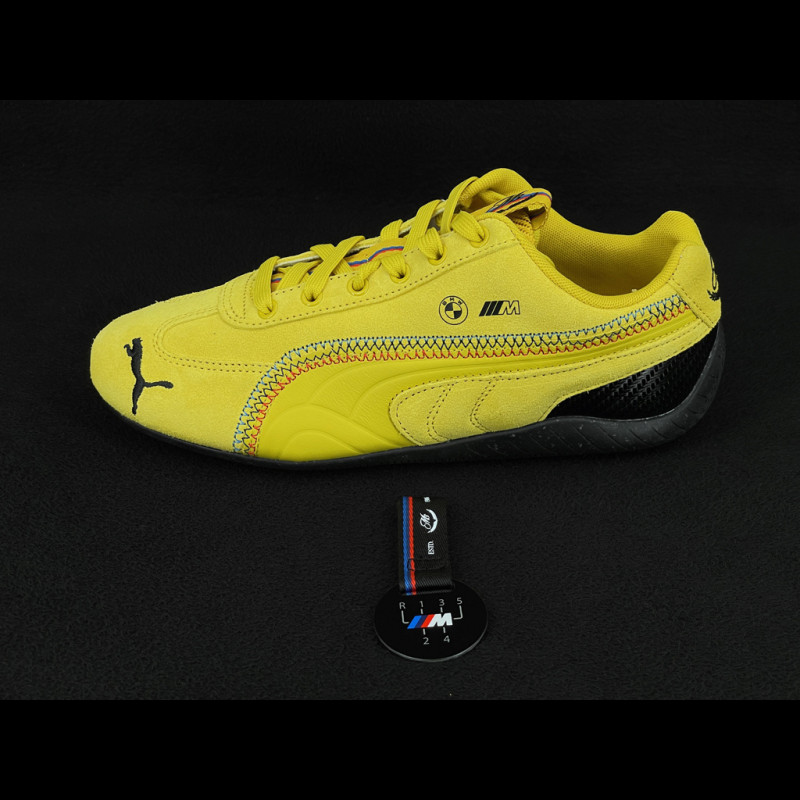 BMW Schuhe M3 Speedcat + Schlüsselanhänger + Sammlerbox Puma Leder / Carbon-Optik Phönixgelbe 309309-02 - unisex