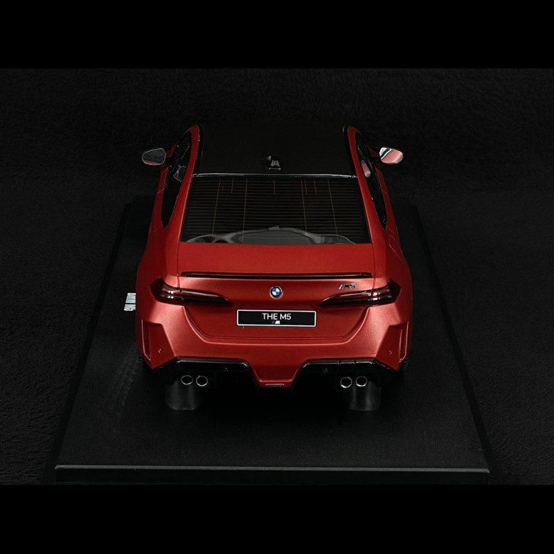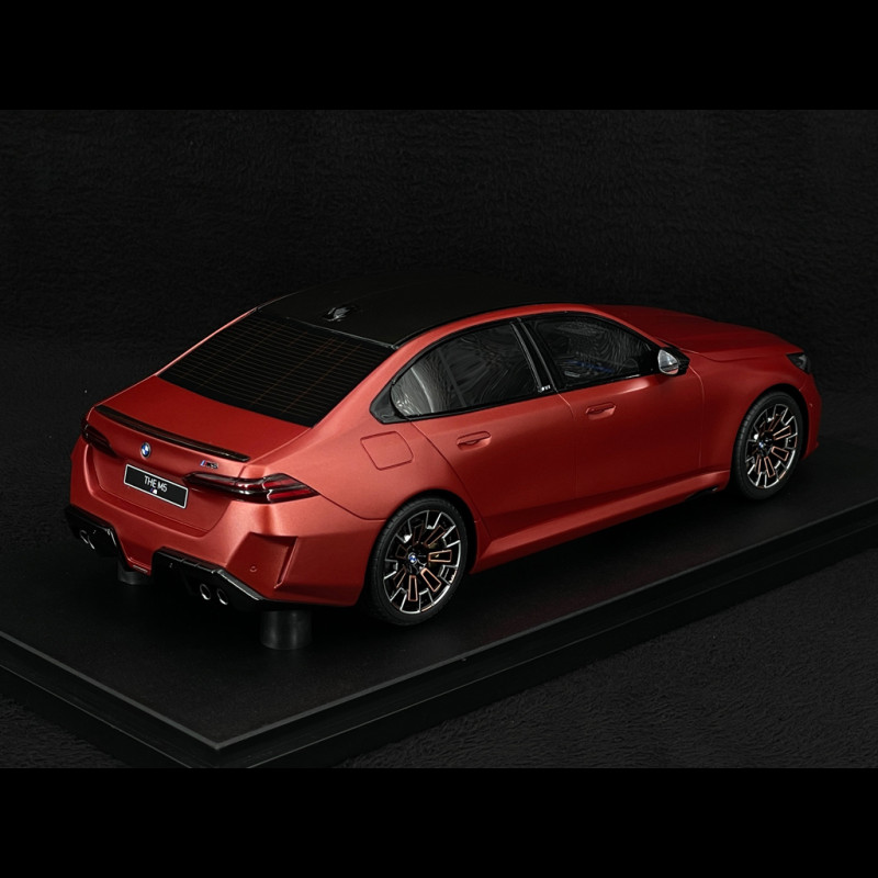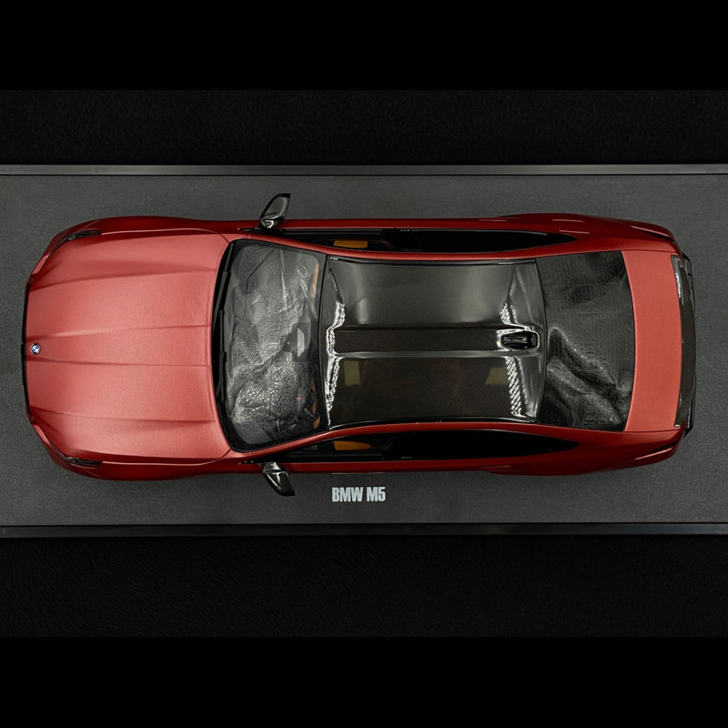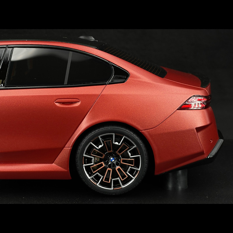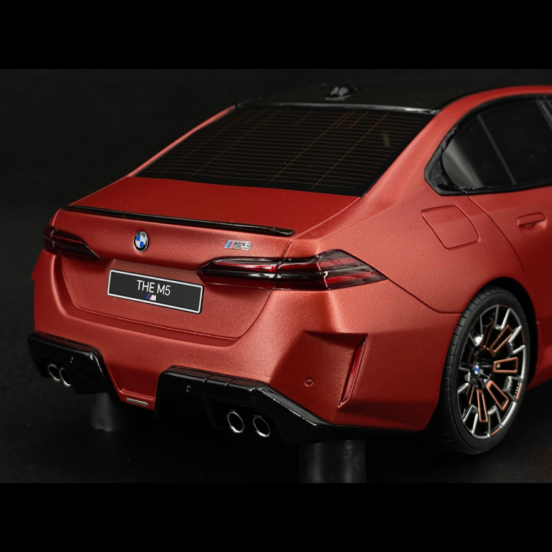 Der BMW M5 Pebble Beach Frozen Orange (2025) verkörpert die nächste Generation der legendären Sportlimousine in einer exklusiven und spektakulären Konfiguration. Seine Lackierung in Frozen Orange, die beim renommierten Pebble Beach Concours d'Elegance präsentiert wurde, unterstreicht die skulpturalen Linien, die noch imposantere Präsenz und die raffinierte Optik, die Eleganz und Aggressivität vereint. Ausgestattet mit einem leistungsstarken Hybridantrieb und einem grundlegend überarbeiteten Fahrwerk, kombiniert dieser M5 der neuen Generation pure Kraft, Präzision und Spitzentechnologie. Sein einzigartiges Erscheinungsbild, veredelt durch spezifische M-Elemente und hochwertige Oberflächen, macht ihn zu einem seltenen und begehrenswerten Sammlerstück. Innovativ, kraftvoll und raffiniert symbolisiert er perfekt die Evolution von BMW M hin zu einer Zukunft, die kraftvoller und ausdrucksstärker ist als je zuvor.