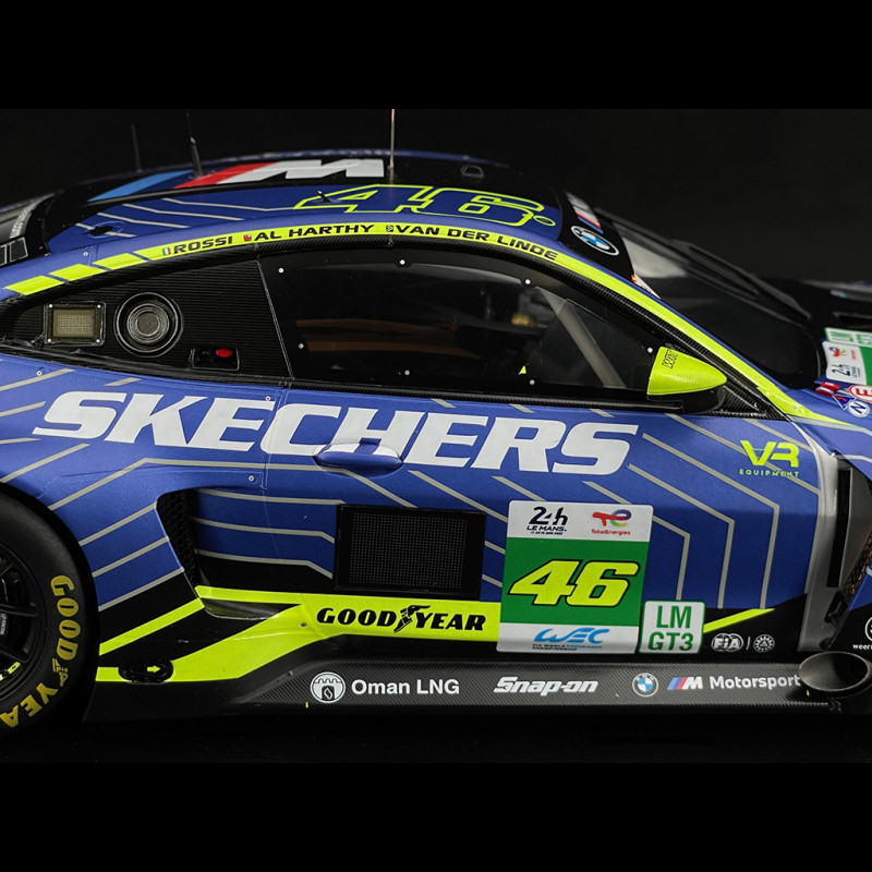 Der BMW M4 GT3 #46 – 24 Stunden von Le Mans 2025 setzt Maßstäbe in der GT3-Kategorie und vereint Leistung, Präzision und Zuverlässigkeit auf den anspruchsvollsten Langstreckenrennen. Konzipiert für den Spitzensport, kombiniert dieser M4 GT3 einen Hochleistungs-Biturbo-Motor, ausgefeilte Aerodynamik und ein extrem steifes Chassis für ein exzellentes Handling bei hohen Geschwindigkeiten. Mit der Startnummer 46 bei den 24 Stunden von Le Mans 2025 besticht er durch seine sportliche Lackierung und die aerodynamischen Optimierungen, die maximalen Abtrieb und Stabilität auf den langen Geraden und schnellen Kurven der Rennstrecke von Le Mans gewährleisten. Jedes Detail, von der Hochleistungsbremsanlage bis hin zu den Fahrwerkseinstellungen, ist darauf ausgelegt, dem berühmtesten Rennen der Welt standzuhalten.