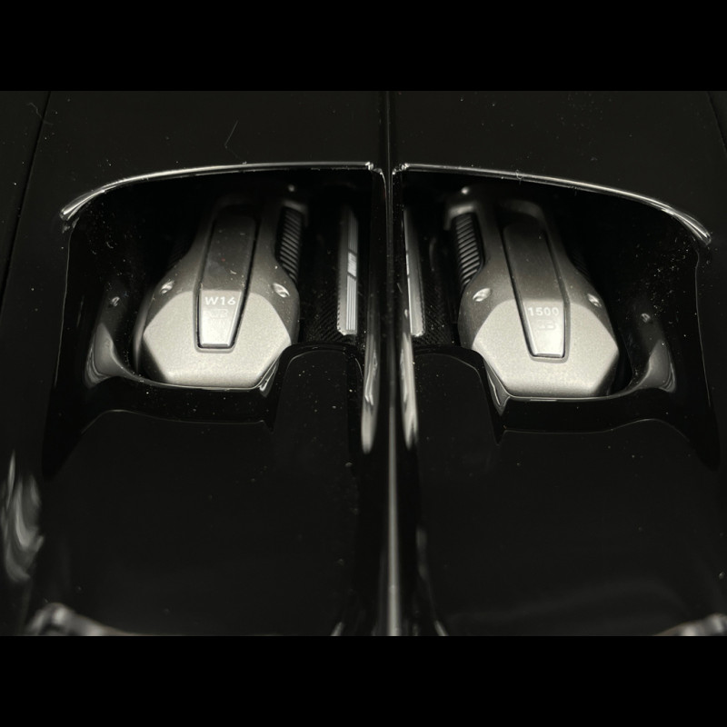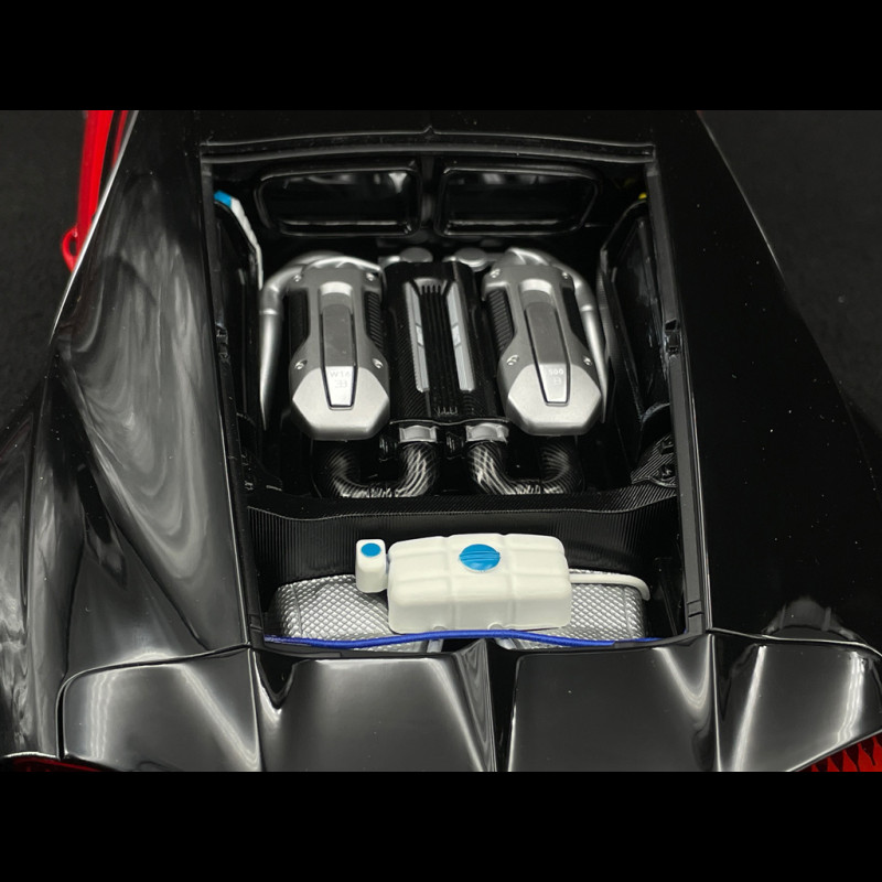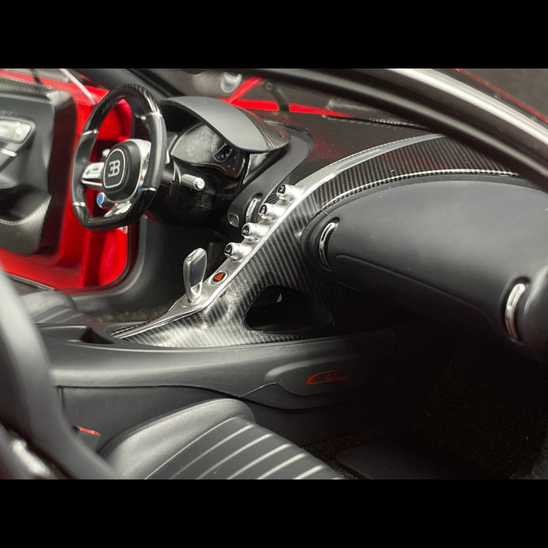 Der Chiron lässt sich vollständig öffnen: Fronthaube, Türen und Motorhaube geben den Blick frei auf einen detaillierten W16-Motor unter der Heckscheibe, einen funktionsfähigen Heckflügel und ein luxuriöses Interieur (zweifarbige Sitze, schwebende Mittelkonsole und Instrumente), das im Maßstab 1:12 besonders gut zur Geltung kommt. All dies macht ihn zu einem spektakulären Ausstellungsstück von beachtlicher Größe und beachtlichem Gewicht – ideal für Sammler von Supercars und Hypercars, die neben anderen Modellen im Maßstab 1:12 ein imposantes Ausstellungsstück suchen.
