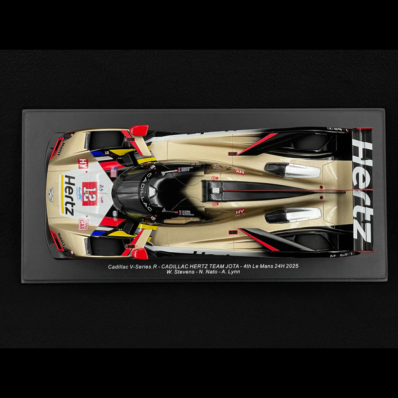 Der vom CADILLAC HERTZ TEAM JOTA in der Hypercar-Kategorie eingesetzte Cadillac V-Series R mit der Startnummer 12 nahm 2025 an den 24 Stunden von Le Mans teil. Am Steuer saßen Will Stevens, Norman Nato und Alex Lynn, die bereits gemeinsam die 6 Stunden von Spa gewonnen hatten. Nach der Pole-Position in der Hyperpole hielt der goldene Cadillac seine Position an der Spitze während des gesamten Rennens und belegte schließlich einen soliden 4. Platz. Damit bestätigte er das Potenzial des amerikanischen 5,5-Liter-V8-Motors im Vergleich zu den europäischen Maßstäben im Langstreckenrennsport.