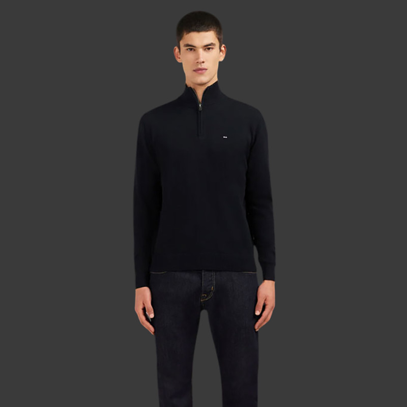 Eden Park Pullover mit Reißverschlusskragen Baumwolle Schwarz PPKNIPUE0022-NO - herren