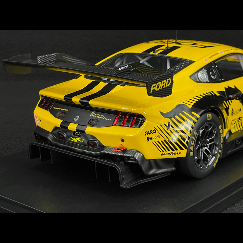Das Modell des Ford Mustang GT3 Nr. 44 vom 24h Le Mans 2024 im Maßstab 1:18 bildet den Proton Competition-Rennwagen mit seiner gelb-schwarzen Lackierung, dem aggressiven Aerodynamik-Kit und dem markanten breiten Mustang GT3-Kühlergrill detailgetreu nach. Es verfügt über die Startnummer 44, die Namen Hartshorne/Tuck/Mies im Innenraum, Rennfelgen und fein gegossene Karosseriedetails aus Resin. Damit ist es ein ideales Ausstellungsstück für eine Vitrine, die modernen LMGT3s und Fords Rückkehr nach Le Mans gewidmet ist.
