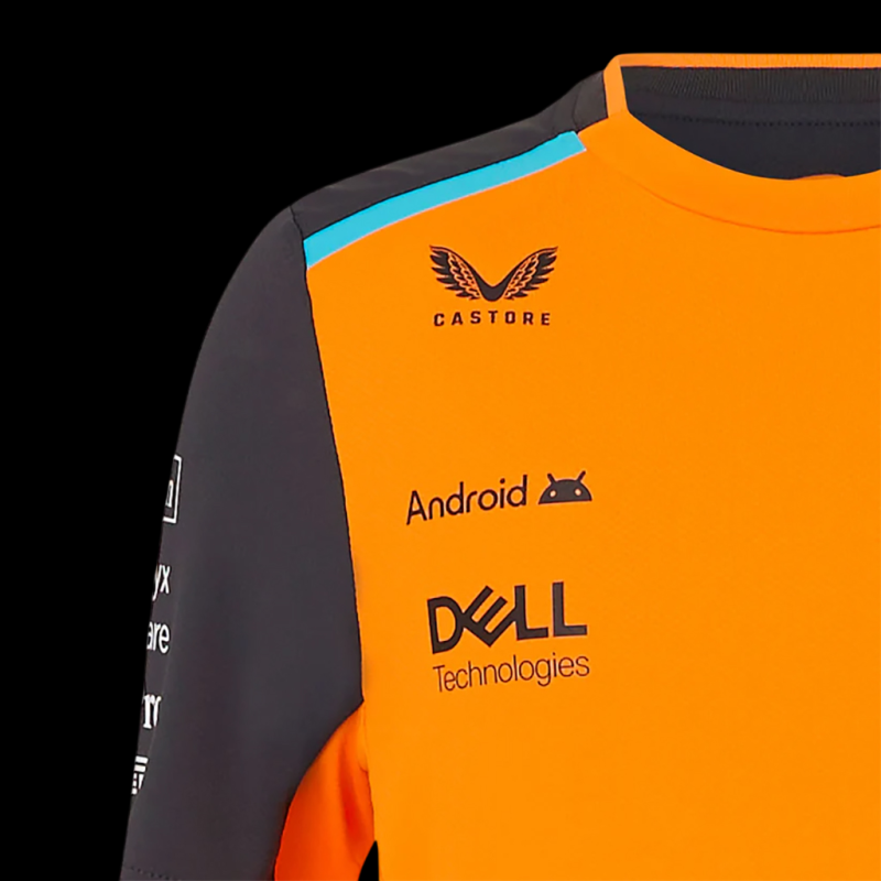 Mit dem McLaren F1 Team Lando Norris T-Shirt kann Ihr junger Fan seinen Lieblingsfahrer unterstützen. Inspiriert vom Outfit, das Norris an Grand-Prix-Wochenenden trägt, besticht es durch die berühmte Papaya-Orange-Farbe in Kombination mit Teamdetails für einen authentischen Paddock-Look. Dieses T-Shirt aus leichtem, dehnbarem Funktionsmaterial (91 % Polyester, 9 % Elastan) bietet Komfort, Atmungsaktivität und optimale Bewegungsfreiheit – perfekt zum Renngucken oder Spielen im Freien. Die Nummer 4, Landos Name und die offiziellen McLaren F1 Team-Logos machen dieses Shirt zu einem Must-have für junge Fans des britischen Teams.