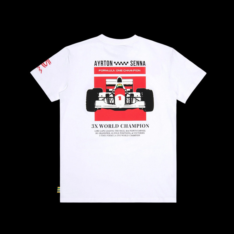 Ayrton Senna T-Shirt F1 Weltmeister Weiß ASRC01004-WHT - unisex