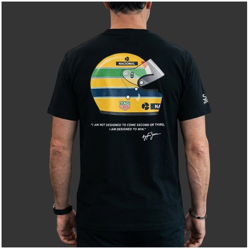Großer Aufdruck von Sennas Helm auf der Rückseite