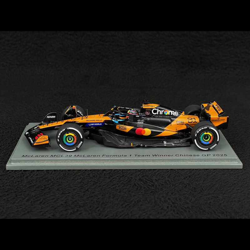 Der McLaren MCL39 Nr. 81 von Oscar Piastri triumphierte beim Großen Preis von China 2025 und bescherte McLaren mit einem Doppelsieg an der Seite von Lando Norris seinen 50. F1-Sieg. Von der Pole-Position aus führte Piastri das Rennen mit einer Ein-Stopp-Strategie vom Start bis zum Ziel an, wehrte Angriffe seiner Rivalen ab und sicherte sich so seinen ersten Saisonsieg.