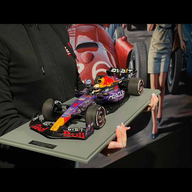 Mit der Startnummer 1 des Champions, der ikonischen Red-Bull-Lackierung und seiner technologischen Meisterschaft verkörpert der RB19 Verstappens Dominanz in der Saison 2023, in der jedes Rennen seinen Status als absoluter Maßstab in der Formel 1 untermauert.