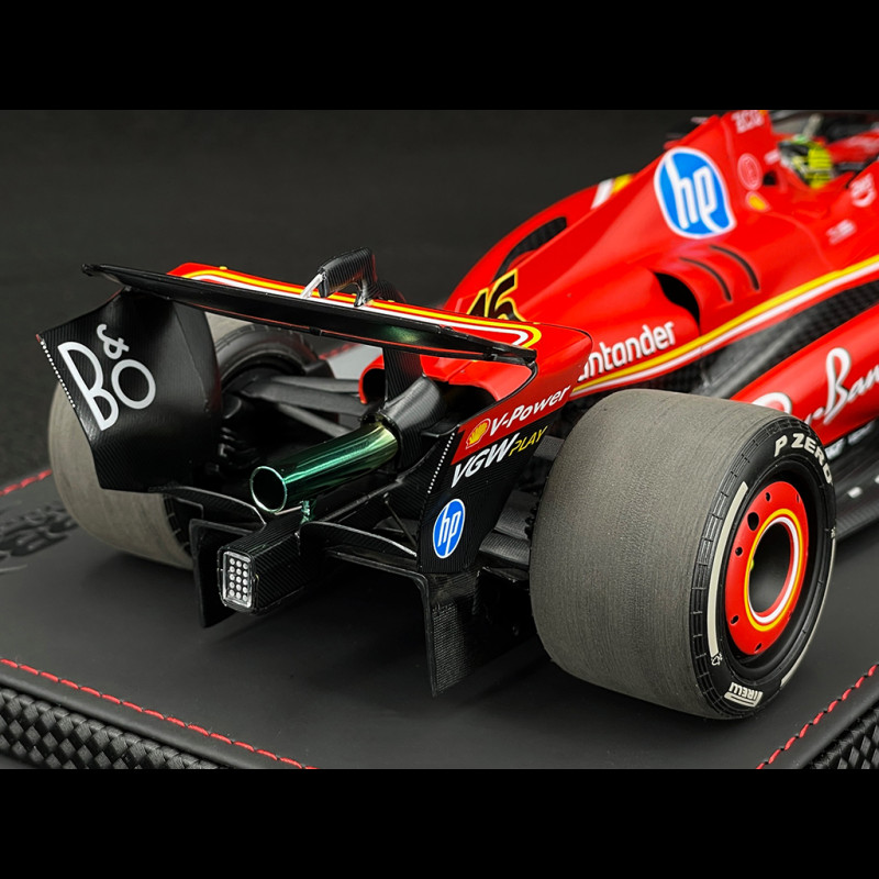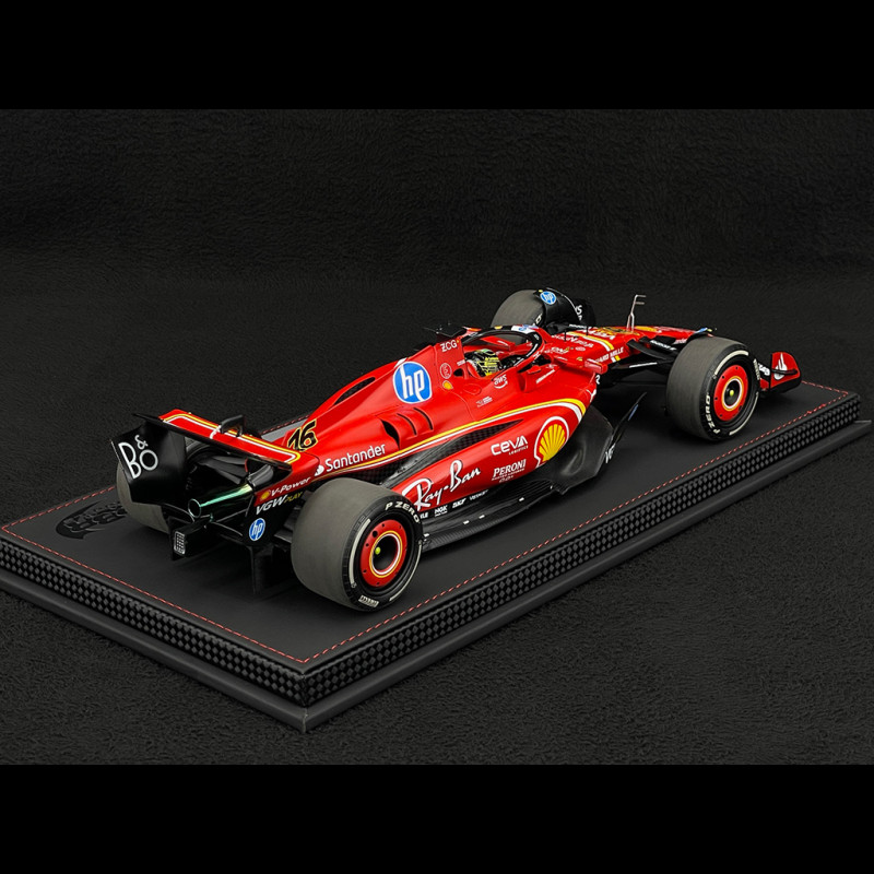 Dieses Miniaturmodell feiert Charles Leclercs Sieg in Monza 2024 mit dem SF-24 mit der Startnummer 16. Es ist in der Konfiguration des Großen Preises von Italien detailgetreu nachgebildet: Ferrari-Rot mit präzisen Details, optimierter Aerodynamik und originalgetreuen Rennmarkierungen. Das BBR Luxury Pack bietet eine hochwertige Diecast-Verarbeitung, präsentiert auf einem Ledersockel mit Vitrine. Die Feinheiten der Aerodynamikelemente, der Felgen, der Pirelli-Reifen und des Cockpits mit Fahrer am Steuer werden hervorgehoben.