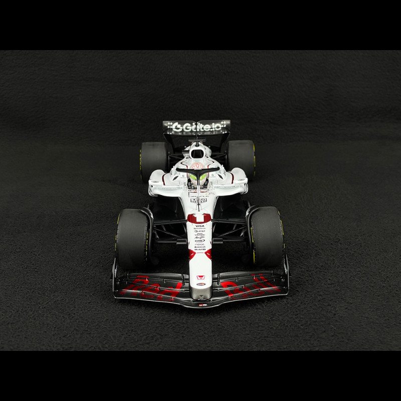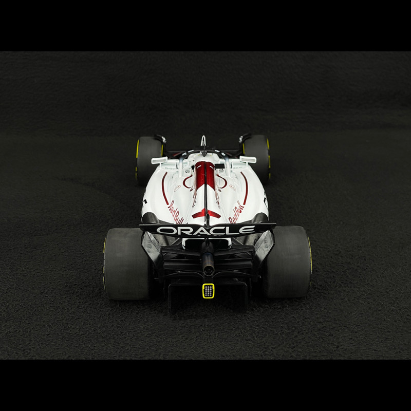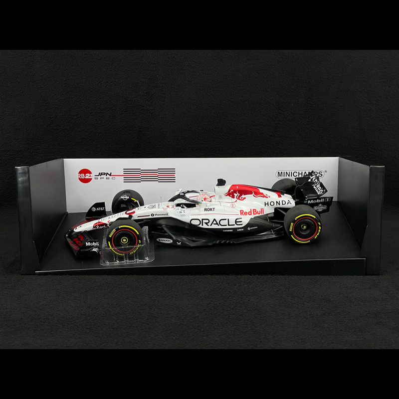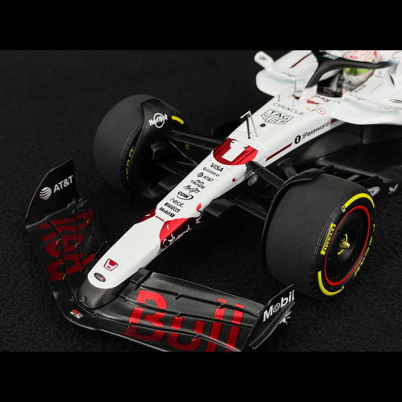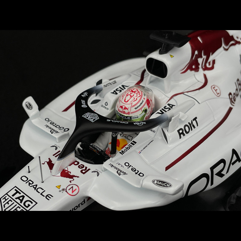 Dieses Miniaturmodell feiert Max Verstappens Red Bull RB21 #1, mit dem er den Großen Preis von Japan 2025 in Suzuka gewann. Die Sonderlackierung in Weiß erinnert an den 60. Jahrestag von Hondas erstem Formel-1-Sieg (Richie Ginther, Mexiko 1965). Das Auto vereint somit die aktuelle Ästhetik von Red Bull Racing mit einer starken historischen Hommage und zeichnet sich durch ein grafisches Design aus, das sich deutlich vom üblichen Dunkelblau abhebt, das auf Fotos der Saison zu sehen ist.