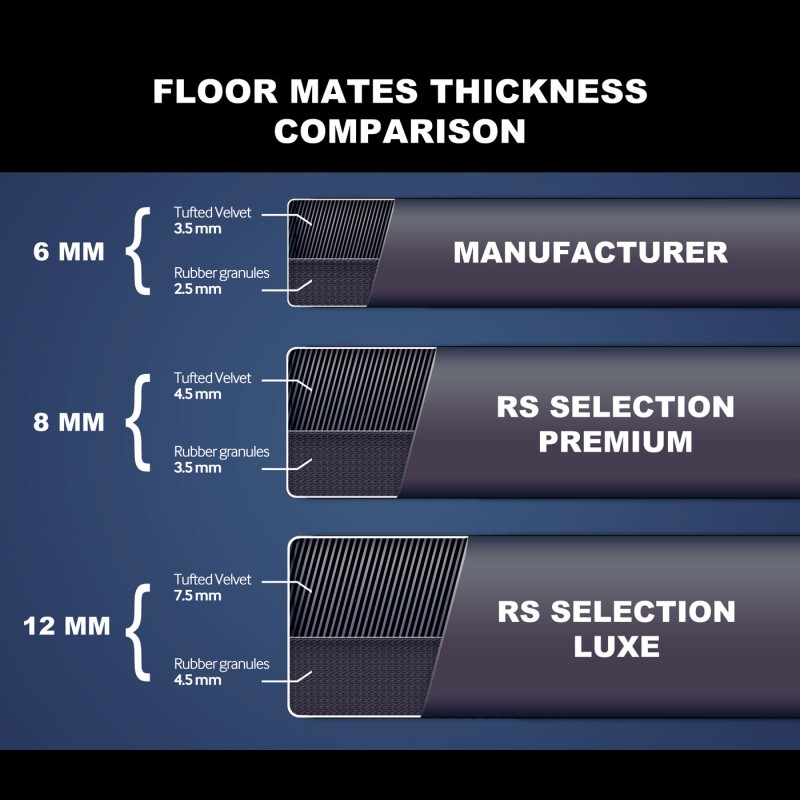 4. Wir bieten je nach Modell verschiedene Arten von Teppichen an: PREMIUM- oder LUXE-Qualität, schwarz oder grau, mit oder ohne Paspelierung.