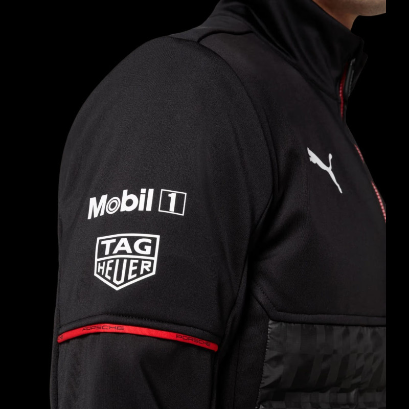 Mit aufgedruckten Logos von Porsche Motorsport, TAG Heuer, Mobil 1 und Puma ist sie optisch an das Outfit des offiziellen Teams angelehnt. Schwarze Grundfarbe mit roten Details und durchgehendem Frontreißverschluss für einen sportlichen Look.