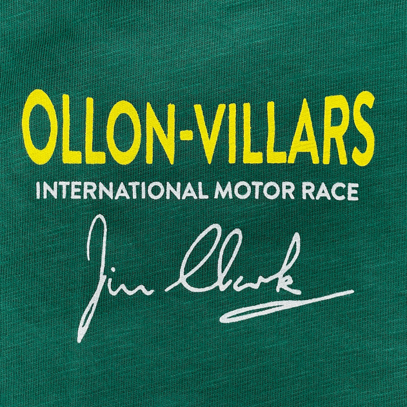 Dieses T-Shirt würdigt Jim Clarks Teilnahme am Bergrennen Ollon-Villars 1965, das er in seinem Lotus 38 nur wenige Wochen nach seinem Sieg bei den Indianapolis 500 bestritt. Warson Motors, ein Partner des Bergrennens Ollon-Villars, reservierte dieses Design zunächst für die freiwilligen Helfer der Veranstaltung, bevor eine kleine zusätzliche Auflage zum Verkauf angeboten wurde. Dadurch ist es ein historisch bedeutsames und relativ seltenes Sammlerstück.