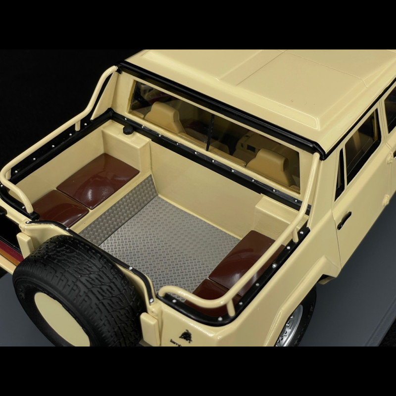 Dieses Modell im Maßstab 1:18 ist eine Hommage an den Lamborghini LM002 von 1987, der von der saudischen Armee eingesetzt wurde, in seiner ikonischen sandbeigen Lackierung. Die massive, kantige Karosserie ist originalgetreu nachgebildet, mit präzisen Details an den Rädern, Scheinwerfern und militärischen Zubehörteilen. Der Innenraum ist zwar nur angedeutet, spiegelt jedoch die spezifische Konfiguration dieses einzigartigen Militär-SUV wider. Ein hochwertiges Sammlerstück, das sowohl den außergewöhnlichen Charakter des LM002 als auch seine besondere militärische Geschichte hervorhebt.