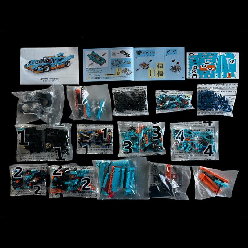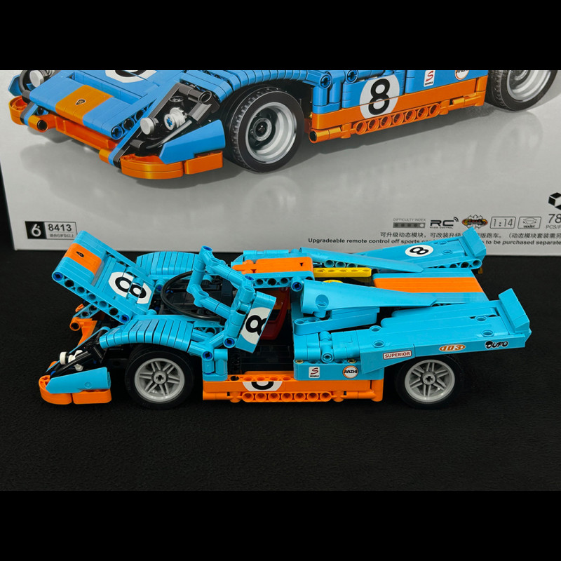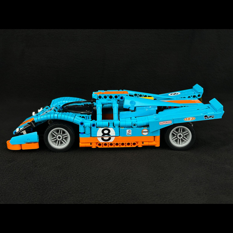 Dieses aus Steinen gebaute Inspired 917 Rennwagen-Set besticht durch sein aggressives Design mit flacher Karosserie, kantigen Linien und einem breiten Heckflügel, die seinen sportlichen Charakter unterstreichen. Sowohl der Innen- als auch der Außenbereich sind detailreich gestaltet, mit einem strukturierten Cockpit, einer zu öffnenden Motorhaube und Türen – ein tolles und stylisches Ausstellungsstück.