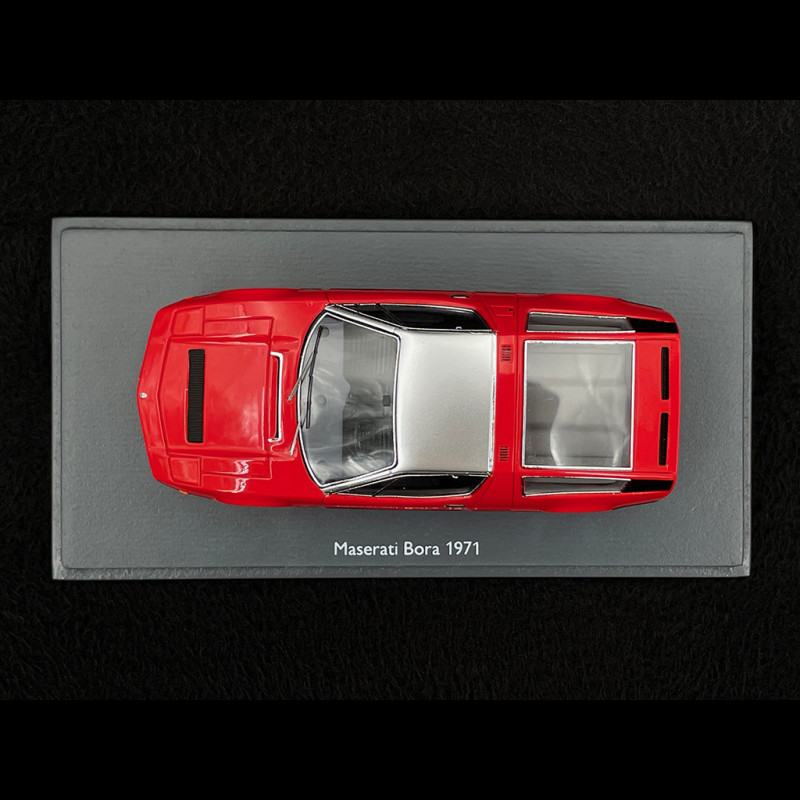 Das von Schuco gefertigte Modell des roten Maserati Bora von 1971 im Maßstab 1:43 ist eine elegante Nachbildung des klassischen italienischen Gran Turismo der 1970er-Jahre. Getreu den fließenden Linien und dem unverwechselbaren Design des Originals besticht dieses Modell durch seine ausgewogenen Proportionen, die Chromdetails und die tiefrote Lackierung, die die raffinierte, sportliche Ästhetik des realen Fahrzeugs widerspiegeln. Mit viel Liebe zum Detail gefertigt, fängt dieses Modell die charakteristischen Merkmale des Maserati Bora Scheinwerfer, Kühlergrill, Felgen und die elegante Silhouette ein und bietet die für Schuco typische, makellose Verarbeitung. Schuco ist bekannt für die Qualität seiner 1:43-Modelle.