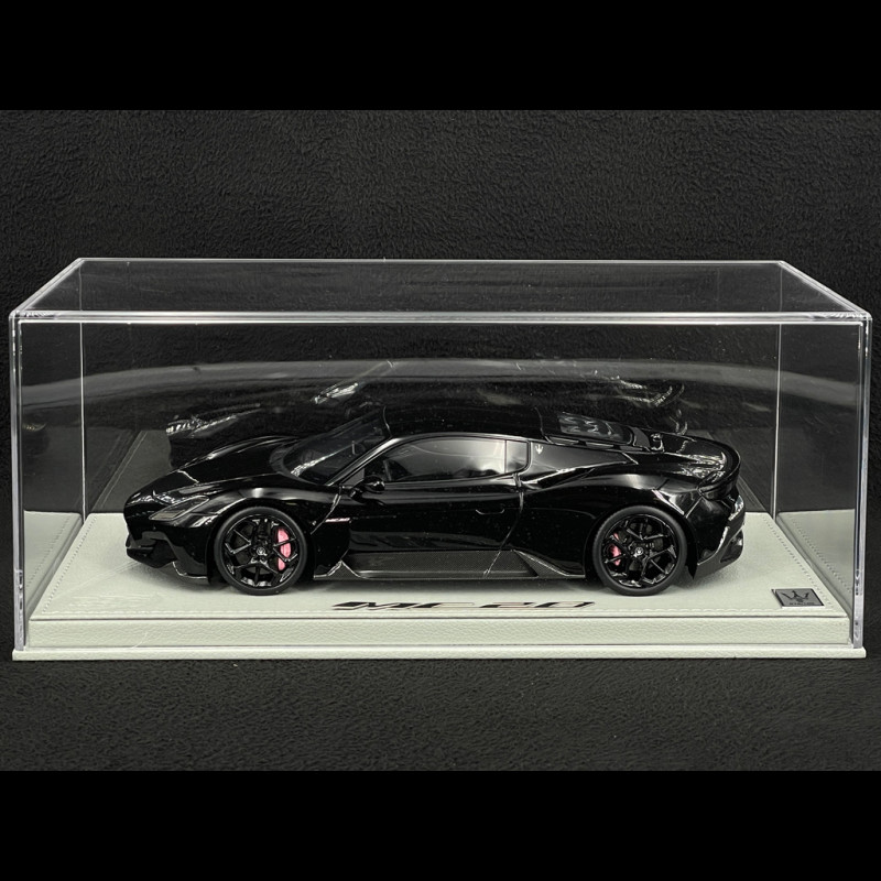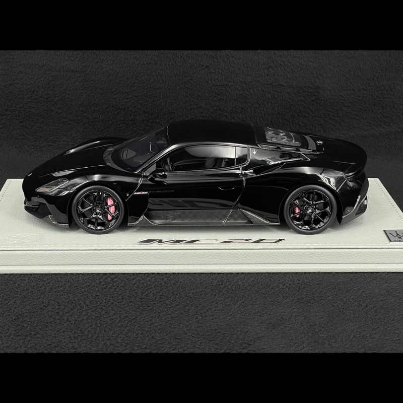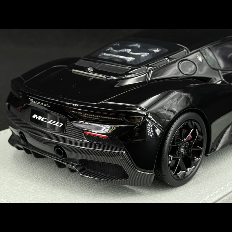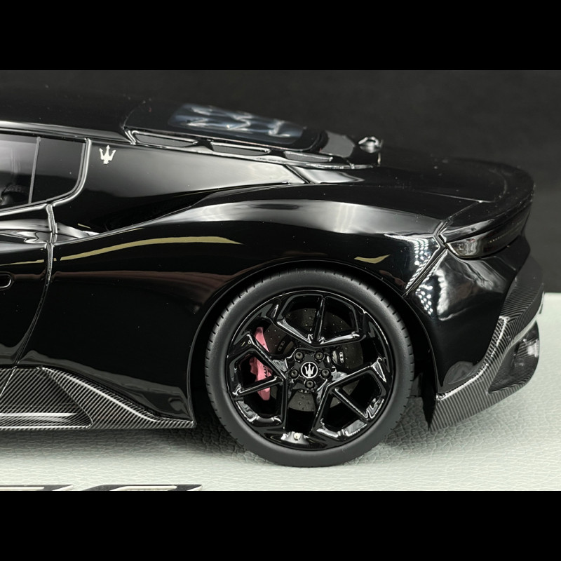 Der Maserati MC20 in Schwarz/Glanzrosa im Maßstab 1:18 ist ein hochwertiges Resinmodell ohne zu öffnende Teile, das die präzise Formgebung und die aerodynamischen Elemente besonders hervorhebt. Die Karosserie besticht durch einen markanten Kontrast zwischen mattem und glänzendem Schwarz, während das Dreizack-Logo matt und die MC20-Logos sowie die Brembo-Bremssättel in einem leuchtenden Pink gehalten sind. So wird die Fuoriserie-Konfiguration von David Beckhams Wagen originalgetreu wiedergegeben. Dieses auf nur 100 Stück limitierte Modell ist ein exklusives Sammlerstück und ideal für eine Vitrine mit besonderen Konfigurationen und limitierten Maserati-Modellen.