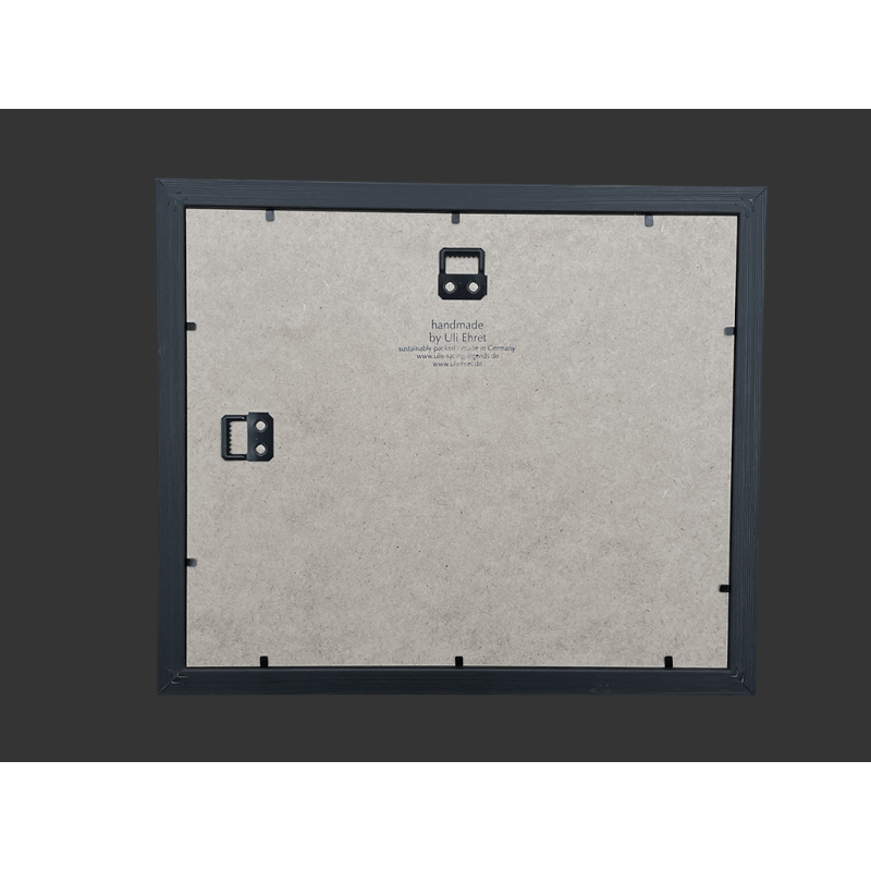 Mit schwarz lackiertem Holzrahmen, doppelter Passepartout und Schutzglas