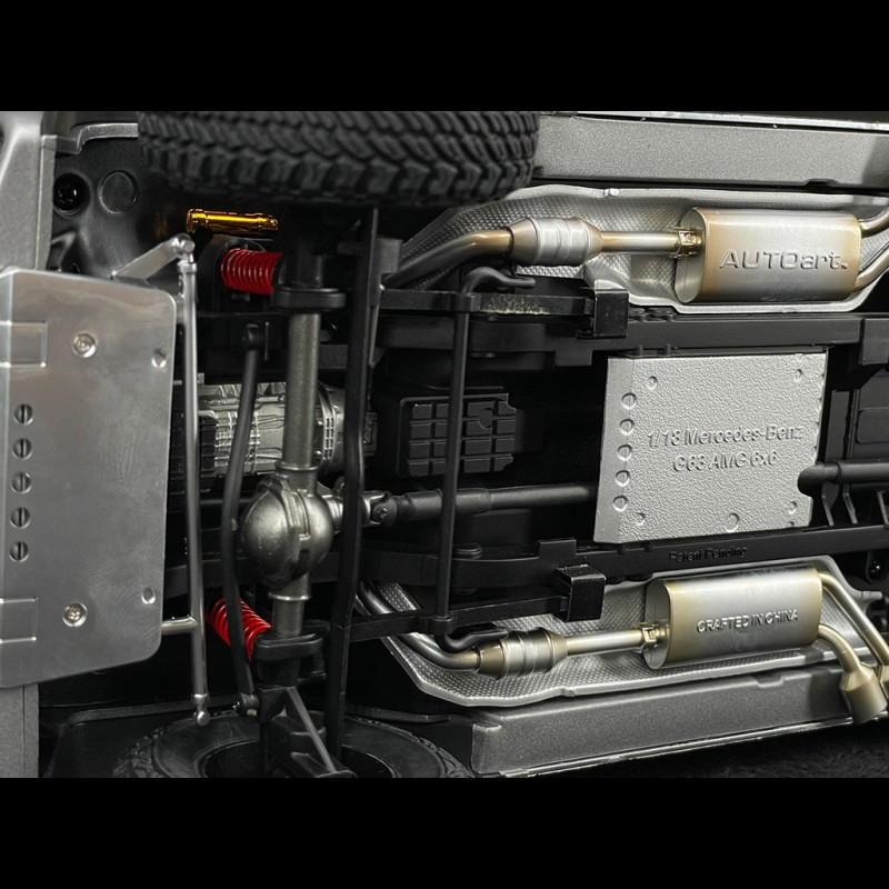 Das AutoArt-Modell im Maßstab 1:18 gibt den G 63 AMG 6x6 in der matten Lackierung Designo Platinum Magno originalgetreu wieder. Diese Lackierung betont die kraftvollen Linien und die zahlreichen Karosseriedetails (verbreiterte Radhäuser, Ladefläche, Schutzelemente). Gefertigt aus Verbundmaterial mit zu öffnenden Teilen und einem fein detaillierten Chassis (Federung, Seitenauspuff, Getriebe), bietet dieses Modell eine spektakuläre Präsenz und ist die perfekte Ergänzung für jede Mercedes-Sammlung mit Geländewagen- oder Hochleistungs-Thematik.