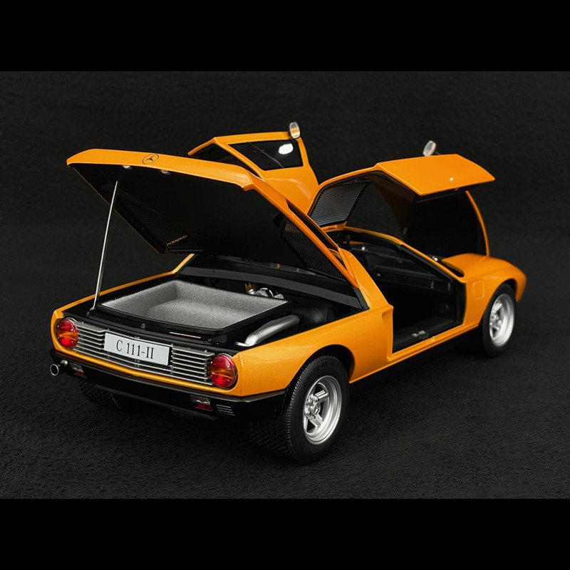 Mercedes-Benz C 111/II 1970 Autumn White – Als wahres rollendes Labor verkörpert der C 111/II mit seinen Flügeltüren und fortschrittlichen Technologien die Innovationskraft von Mercedes in den 1970er Jahren. Diese seltene Version in Autumn White verdeutlicht das Streben nach Leistung und futuristischem Design, das die Geschichte der Marke geprägt hat.