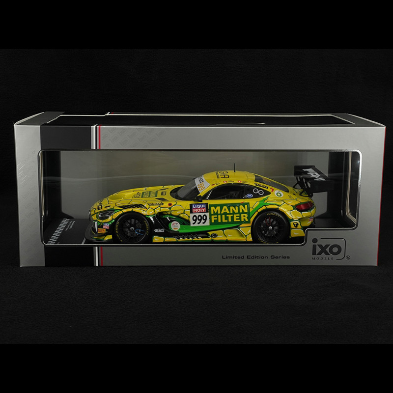 Das von Ixo gefertigte Modell besticht durch seine akribische Verarbeitung und eine dem Originalfahrzeug originalgetreue Karosserie mit Lackierung, Sponsorenlogos und technischen Details sowie der typischen Silhouette des Mercedes-AMG GT3 Evo.
