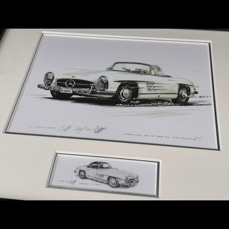 Mercedes-Benz Rahmen 300 SL Roadster 1957 Schwarzer Holzrahmen mit Skizze 25 x 30 cm - Uli Ehret
