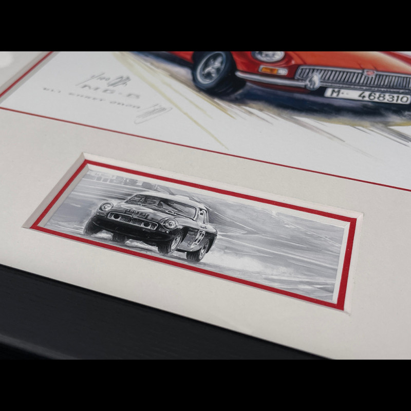 MG-B Rahmen Cabriolet 1962 Schwarzer Holzrahmen mit Skizze 25 x 30 cm - Uli Ehret