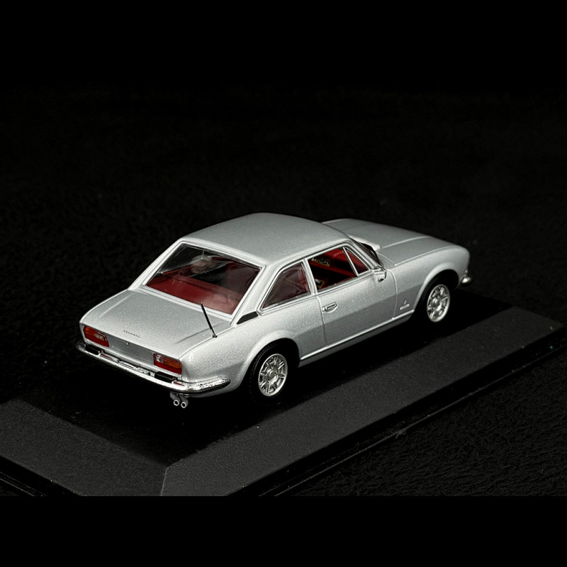 Dieses 1:43 Modell stellt den Peugeot 504 Coupé im Baujahr 1974 dar. Die Miniatur ist in silberner Metalliclackierung gehalten – ein elegantes Finish, das die Linienführung des von Pininfarina entworfenen Originals unterstreicht.