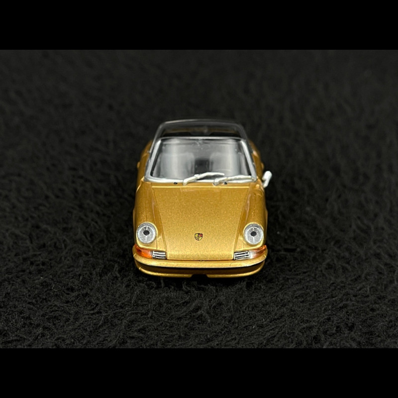 Dieser von Minichamps nachgebildete Porsche 911 Targa (F-Serie) besticht durch seine historische Lackierung in 'Goldmetallic, einer leuchtenden und symbolträchtigen Farbe aus der Porsche-Farbpalette der frühen 1970er Jahre.
