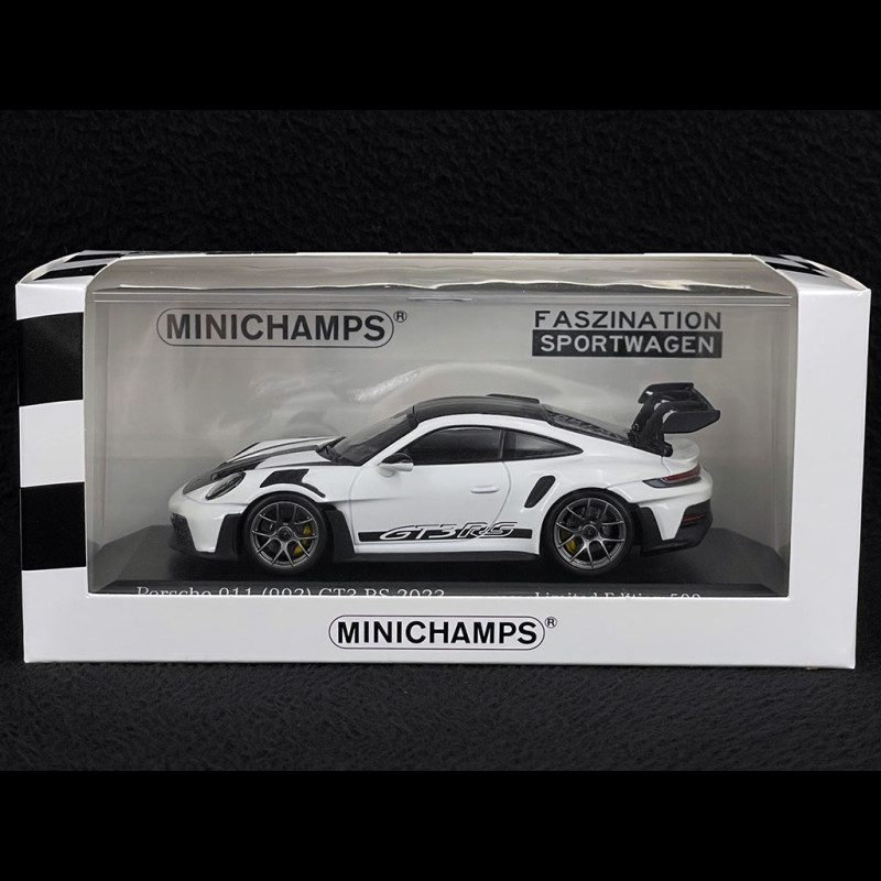 Porsche 911 GT3 RS Type 992 2023 Weiß / Schwarz Streifen 1/43 Minichamps 413062107