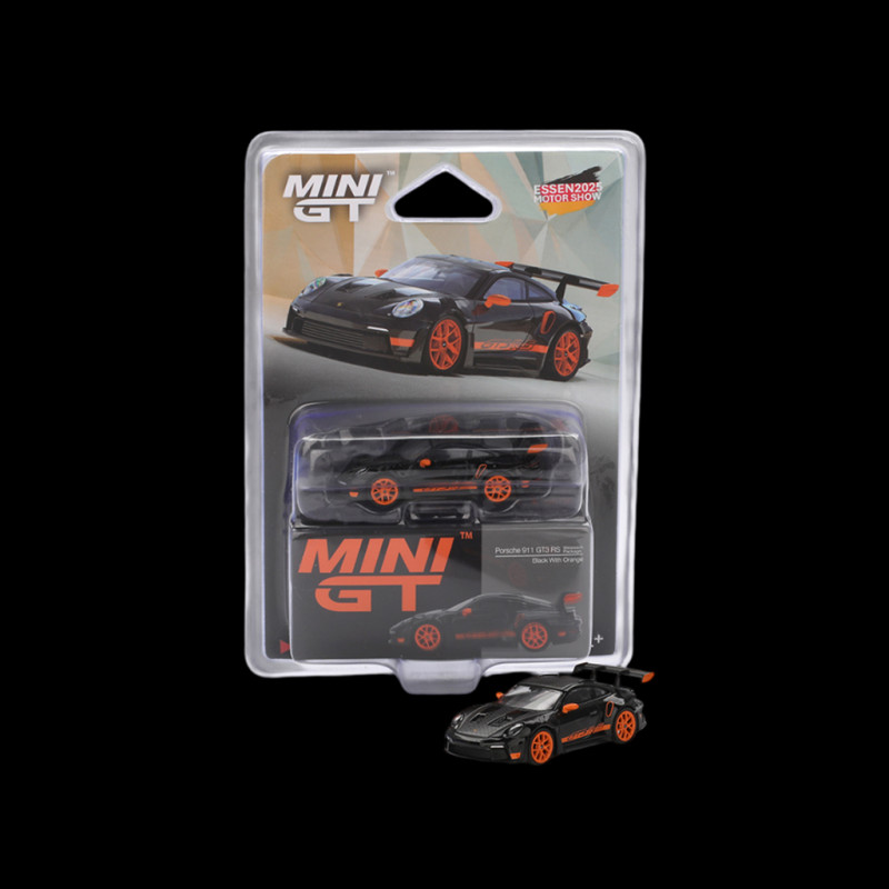 Porsche 911 Type 992 GT3 RS Weissach Package Essen Motorshow Exklusivität 2025 Schwarz / Orange 1/64 Mini GT MGT01127-BL