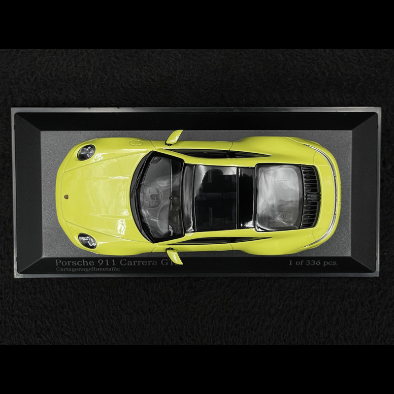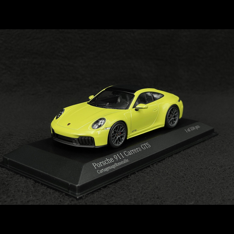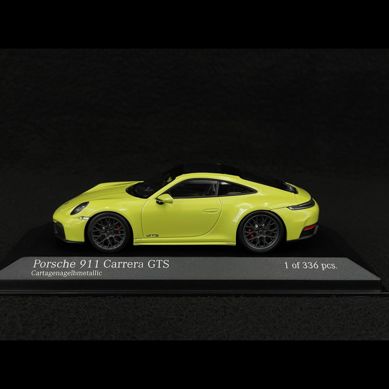 Das Porsche 911 Carrera GTS (992.2) Modell im Maßstab 1:43 von Minichamps bildet die sportliche Version des modernen 911 in markantem Cartagena Gelb originalgetreu nach und entspricht damit der zeitgenössischen Porsche-Ästhetik.