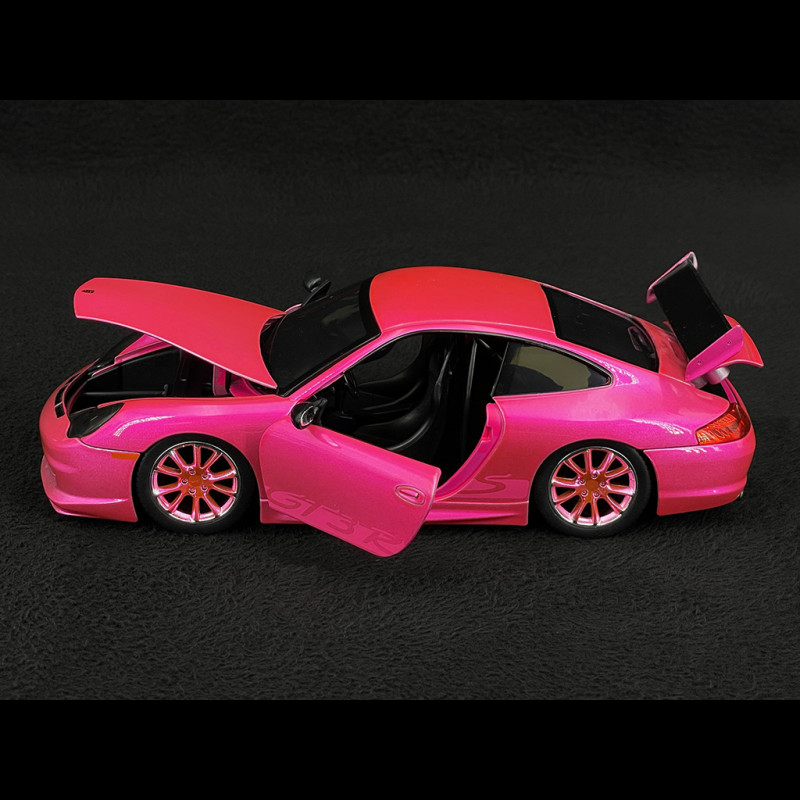 Porsche 911 GT3 RS Typ 996 2003 Metallisch Fluoreszierendes Rot Pink Slips 1/24 Jada Toys 34847
