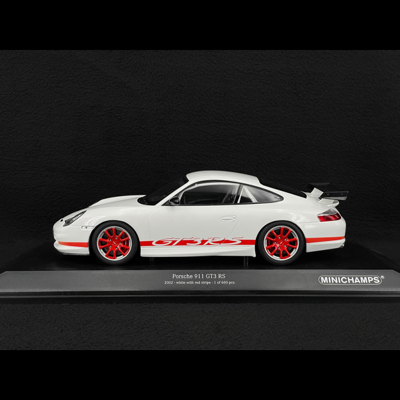 Porsche 911 GT3 RS Typ 996 2002 Weiß / Rote Streifen 1/18 Minichamps 155062020