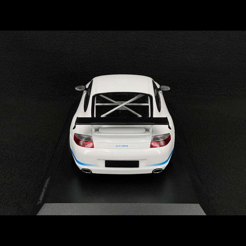 Dieses Modell im Maßstab 1:18 von Minichamps (Art.-Nr. 155062021) zeigt die historische weiße Lackierung mit blauen Streifen, eine direkte Anspielung auf den legendären 2.7 RS von 1973. Der Hersteller hat besonders darauf geachtet, dass die Linienführung originalgetreu ist und die RS-Markierungen an den Seiten präzise wiedergegeben werden. Die Gesamtqualität der Verarbeitung, einschließlich der passenden Räder und des reduzierten Interieurs, macht dieses Modell zu einem Herzstück für jeden Sammler ikonischer Sportwagen.