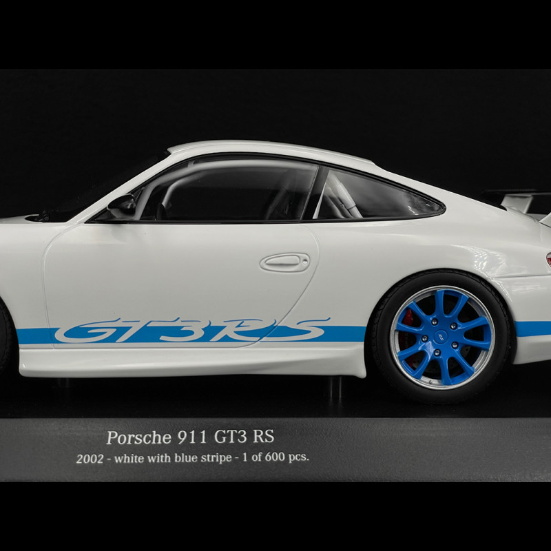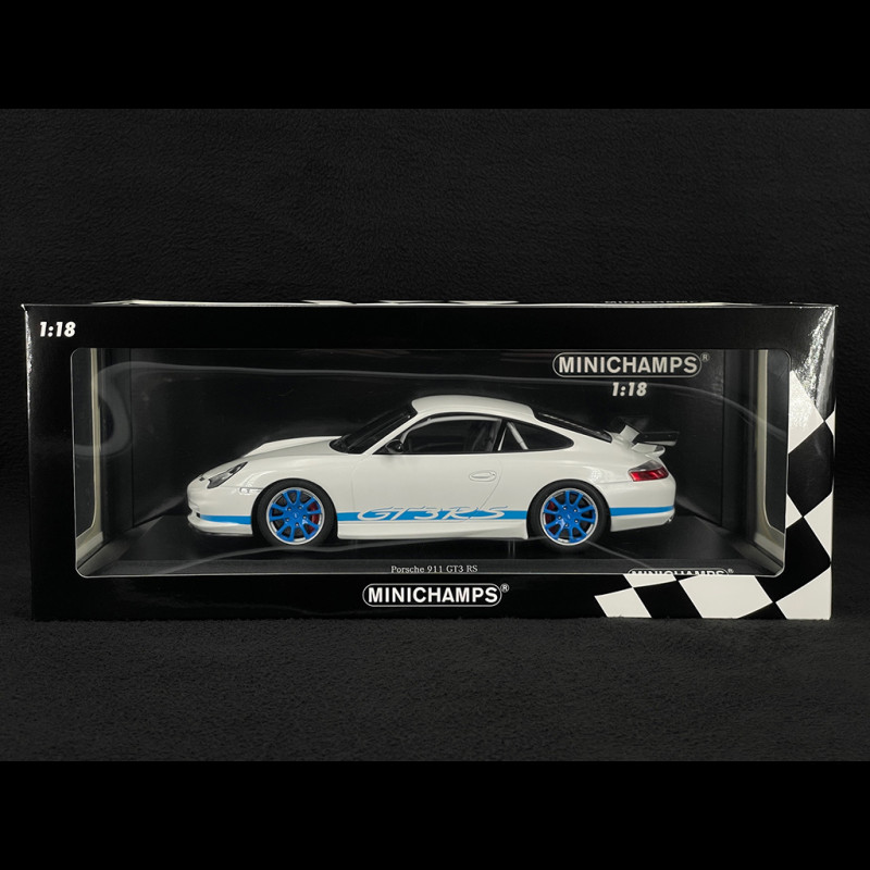 Porsche 911 GT3 RS Typ 996 2002 Weiß / Blaue Streifen 1/18 Minichamps 155062021