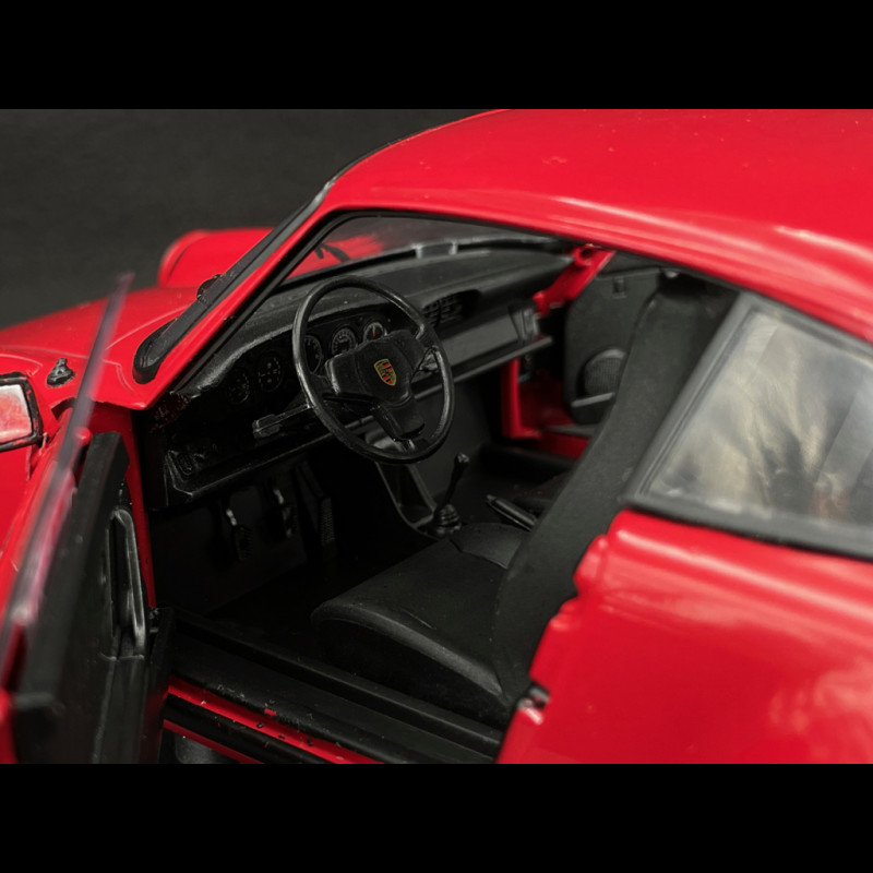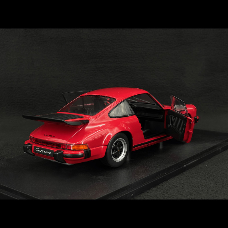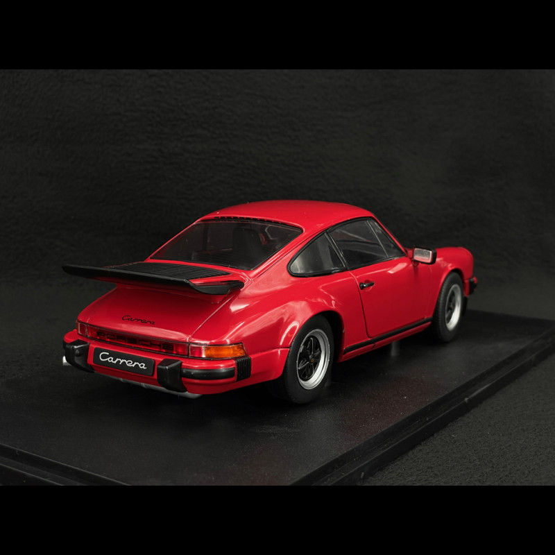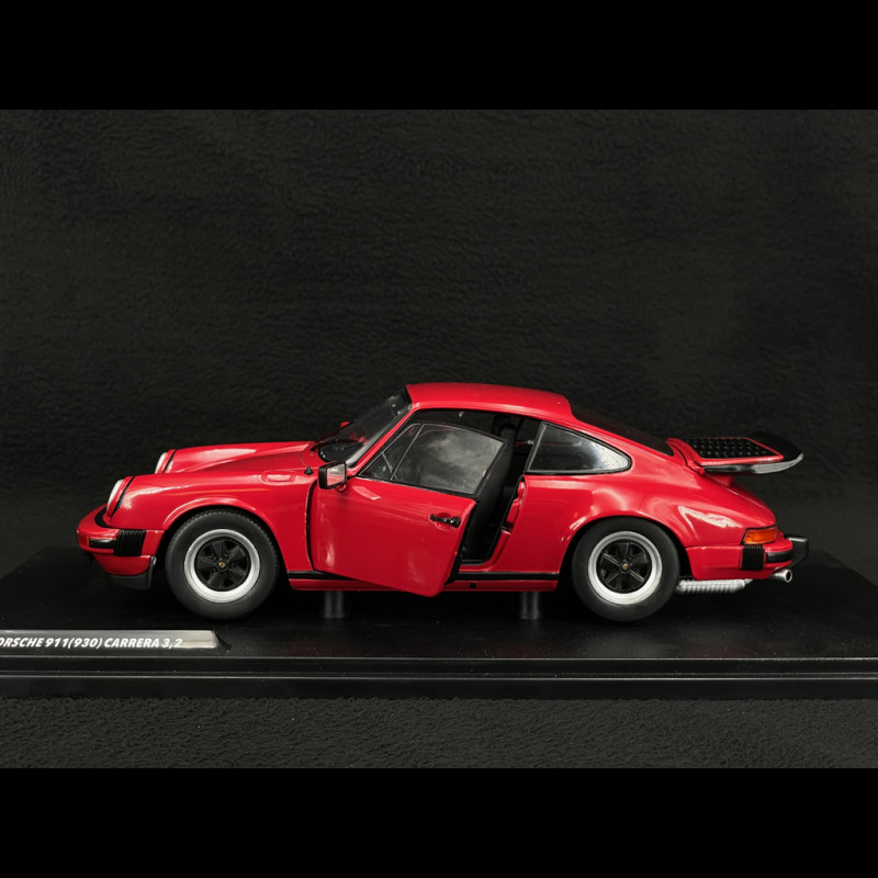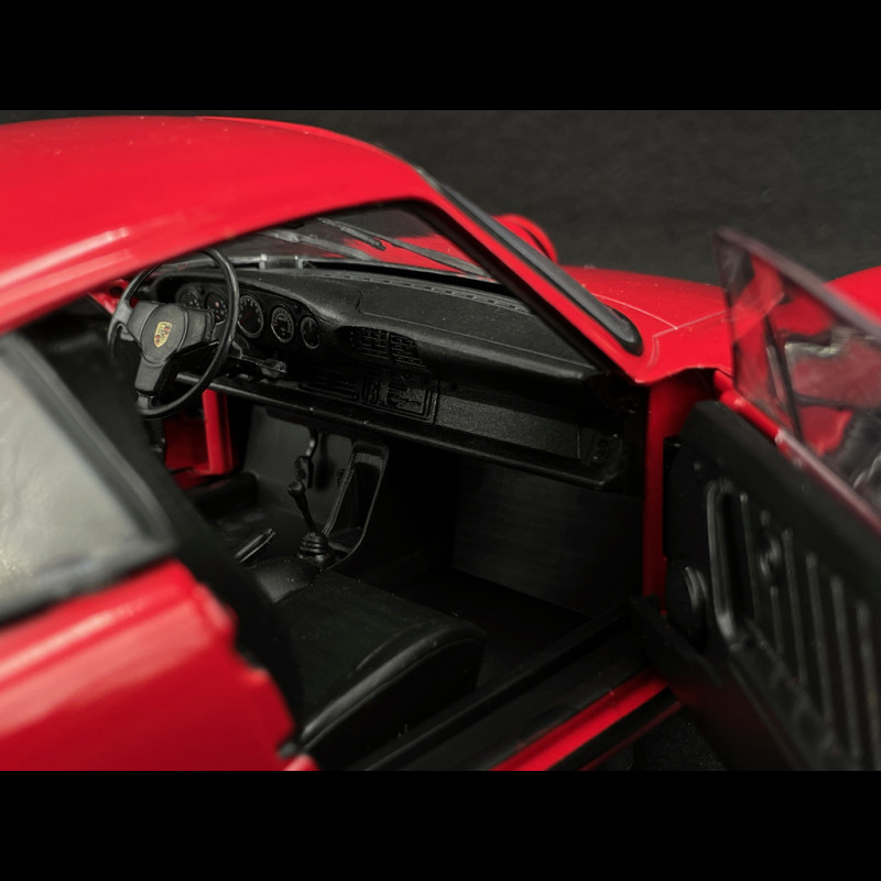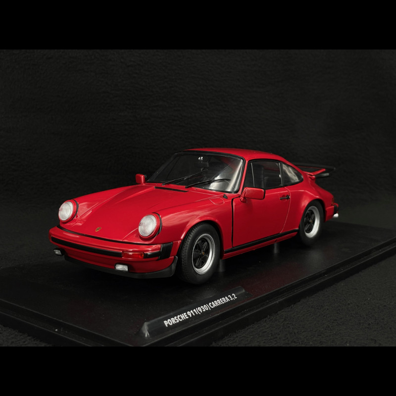Dieses 1:18-Modell des roten Porsche 911 Carrera 3.2 von 1984 ist ein Solido-Metallmodell, das die ikonische „G-Modell“-Silhouette der 911er der 1980er-Jahre perfekt einfängt. Es handelt sich um ein maßstabsgetreues Modell mit zu öffnenden Teilen, funktionierender Lenkung und Gummireifen. Es ist als erschwingliches Modell konzipiert, das dem Original 3.2 optisch sehr nahe kommt: leicht verbreiterte hintere Kotflügel, Stoßstangen mit schwarzen Faltenbälgen, eine perfekt senkrechte Windschutzscheibe und ein Heck mit einem kleinen, angeformten Spoiler (je nach Version).