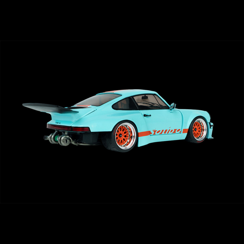 Dieses Porsche 911 KS-R Khyzyl Saleem 2026 Modell von Solido im Maßstab 1:18 bildet den KS-R Restomod mit seiner deutlich verbreiterten Karosserie, dem massiven Heckflügel, dem freiliegenden Heck und den Showcar-typischen Karosseriedetails originalgetreu nach. Das aus Metall gefertigte Modell mit zu öffnenden Teilen besticht durch die Gulf-typische blau-orange Lackierung, die speziellen Felgen und die beiden angedeuteten „Turbos“ an den Auspuffendrohren. Es wird in einer Vitrine geliefert und eignet sich ideal für die Präsentation moderner Restomods und der originellsten 911er.