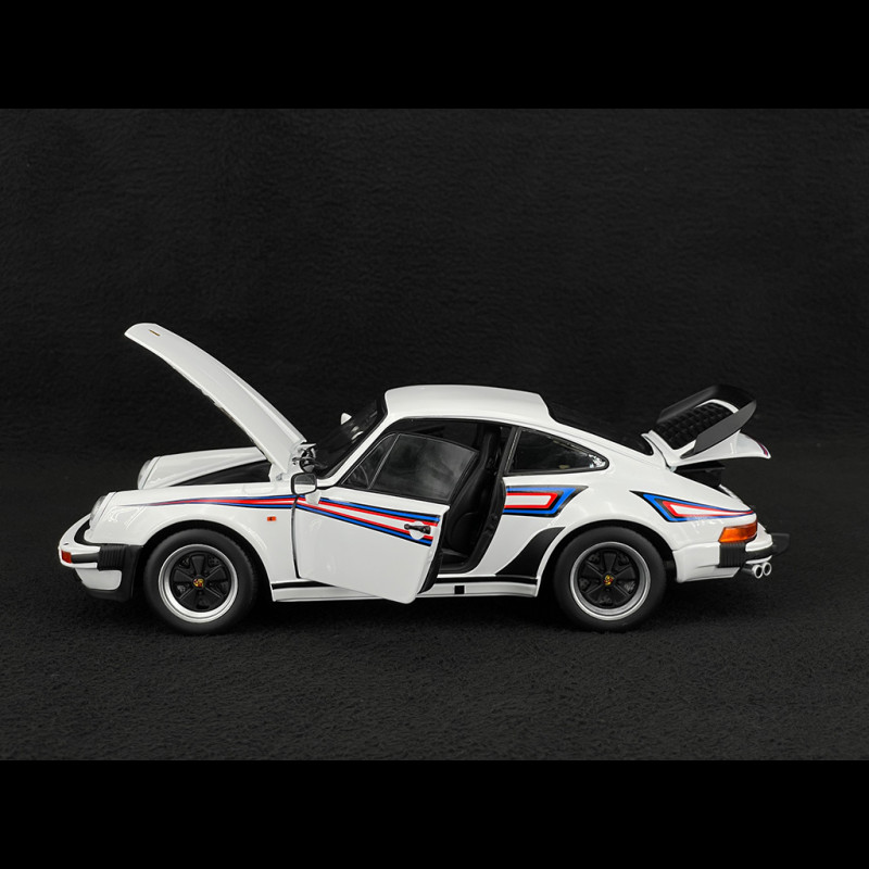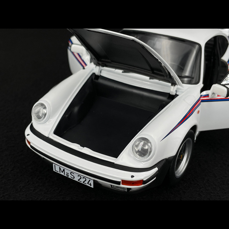 Dieses weiße Porsche 911 (930) Turbo 3.3 Coupé von 1980 im Maßstab 1:18 von Norev (Art.-Nr. 187668) gibt die ikonische Silhouette des 930 mit seinen verbreiterten Kotflügeln, dem markanten Heckspoiler und den für die G-Generation typischen Stoßfängern originalgetreu wieder. Das Modell aus Metallguss besticht durch die weiße Lackierung, die Fuchs-Felgen, den detaillierten Innenraum und die sorgfältige Verarbeitung und ist damit die ideale Ergänzung für jede Vitrine, die klassischen 911ern und frühen Generationen des 911 Turbo gewidmet ist.