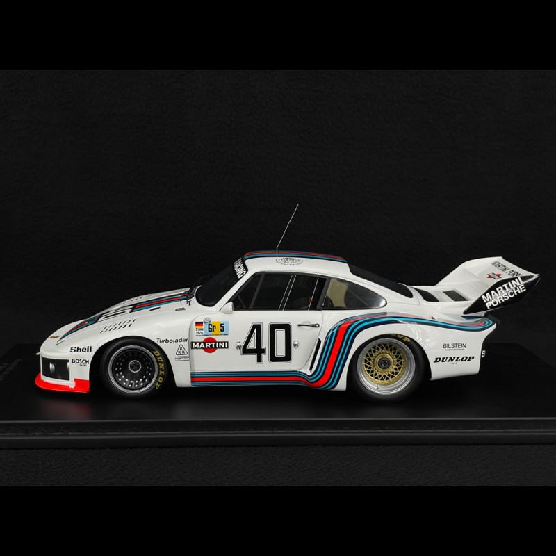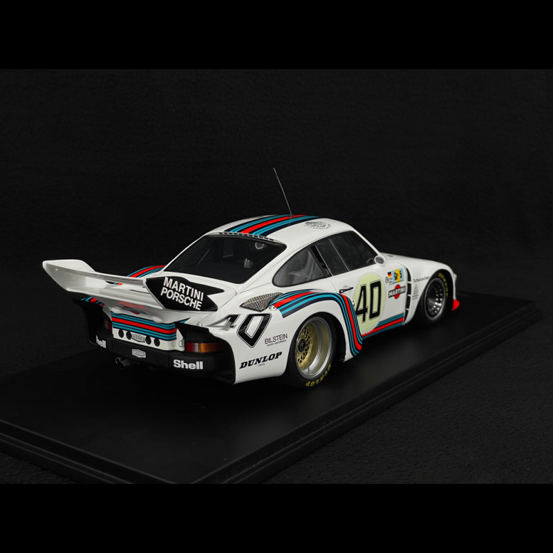 Diese Reproduktion im Maßstab 1:18 aus Kunstharz ist eine Hommage an den Porsche 935 Nr. 40, der 1976 mit Manfred Schurti und Rolf Stommelen am Steuer seine Klasse bei den 24 Stunden von Le Mans gewann. Die damalige Lackierung wurde mit präzisen Markierungen und authentischen Farben originalgetreu nachgebildet. Die Karosserie, Felgen, Scheinwerfer und aerodynamischen Elemente sind detailgetreu gestaltet und spiegeln den Rennprototypen perfekt wider. Dieses Sammlerstück wird mit einer Vitrine geliefert und vereint historische Genauigkeit, hochwertige Verarbeitung und Realismus – ideal für Liebhaber klassischer Porsche und legendärer Langstreckenrennwagen.