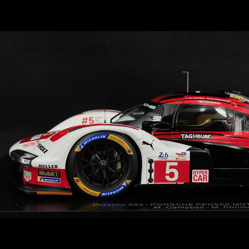Der Porsche 963 mit der Startnummer 5, der bei den 24 Stunden von Le Mans 2024 an den Start ging, ist ein LMDh-Prototyp, der für Höchstleistungen im Langstreckenrennsport entwickelt wurde. Er kombiniert fortschrittliche Hybridtechnologie mit einem Monocoque-Chassis aus Kohlefaser und bietet so Leistung, Zuverlässigkeit und optimierte Aerodynamik, um dem anspruchsvollsten 24-Stunden-Rennen im Motorsport gerecht zu werden.