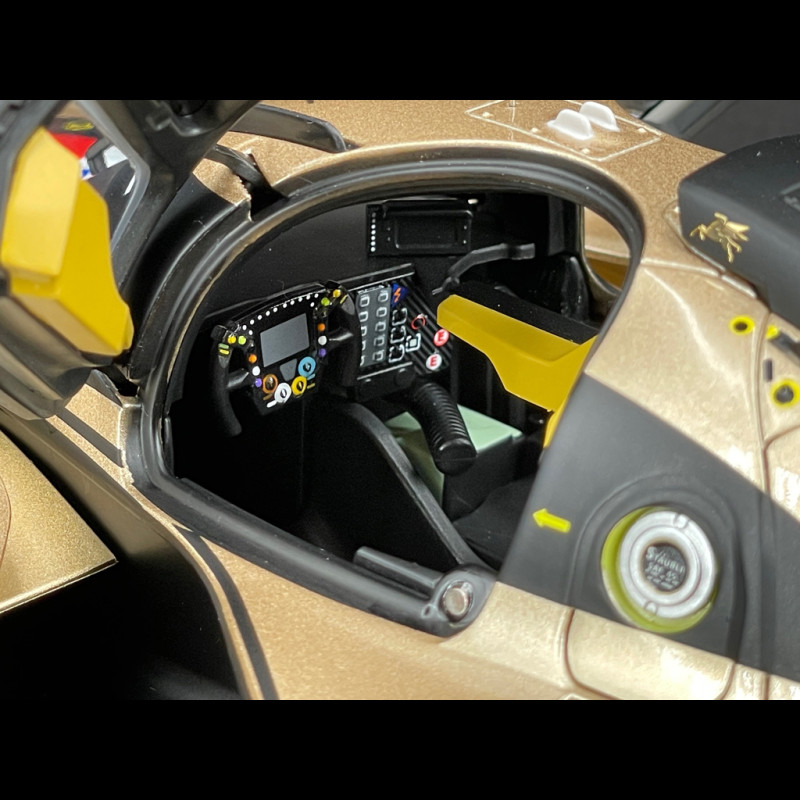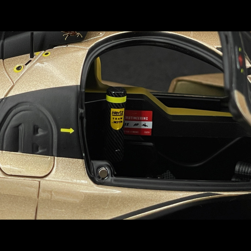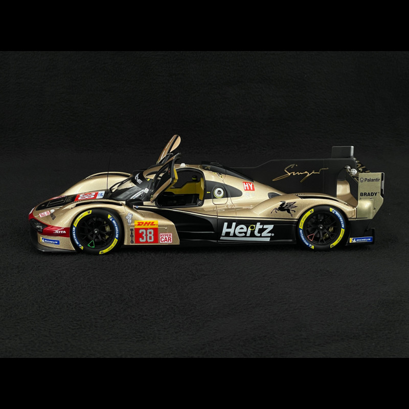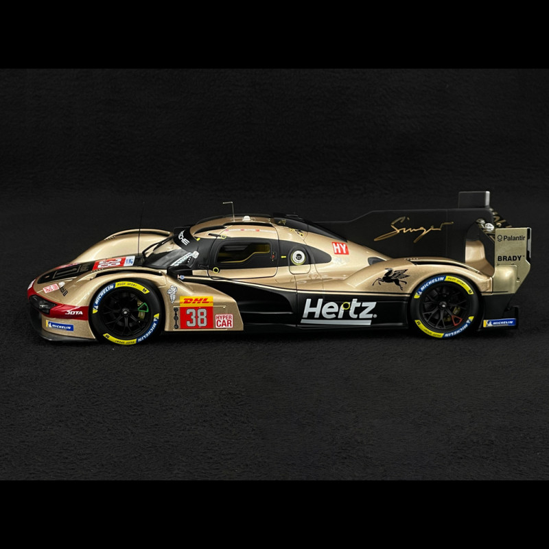 Die Miniatur Porsche 963 Hertz Team Jota – Lone Star LM 24 1/18 ist eine originalgetreue Nachbildung des Porsche 963 Nr. 38 des Hertz Team Jota, der beim Lone Star Le Mans 2024 mit einer auffälligen goldenen Lackierung an den Start ging. Bei Norev, einem französischen Hersteller, der sich auf Miniaturmodelle spezialisiert hat, zeichnet sich dieses Modell im Maßstab 1:18 durch seine funktionsfähigen Türen und einen detaillierten, sichtbaren Innenraum aus, was das Sammelerlebnis im Vergleich zu herkömmlichen versiegelten Versionen deutlich verbessert. Der Realismus reicht bis zu den Felgen, den Reifen und den sorgfältig lackierten Oberflächen, die typisch für das Know-how von Norev im Bereich der hochwertigen Automodelle sind.