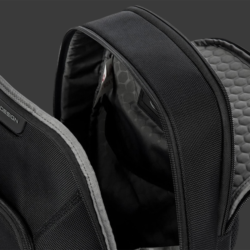 Der Porsche Design Roadster XS Rucksack ist ein stilvoller und praktischer Begleiter für den Alltag. Er besteht aus strapazierfähigem ballistischem Nylon und verfügt über ein gepolstertes Laptopfach, ein geräumiges Hauptfach mit Reißverschluss sowie eine Vordertasche. Die gepolsterten Schulterriemen und der Rückenbereich sorgen für maximalen Komfort. Entwickelt in Zusammenarbeit mit dem italienischen Gepäckprofi Bric’s.